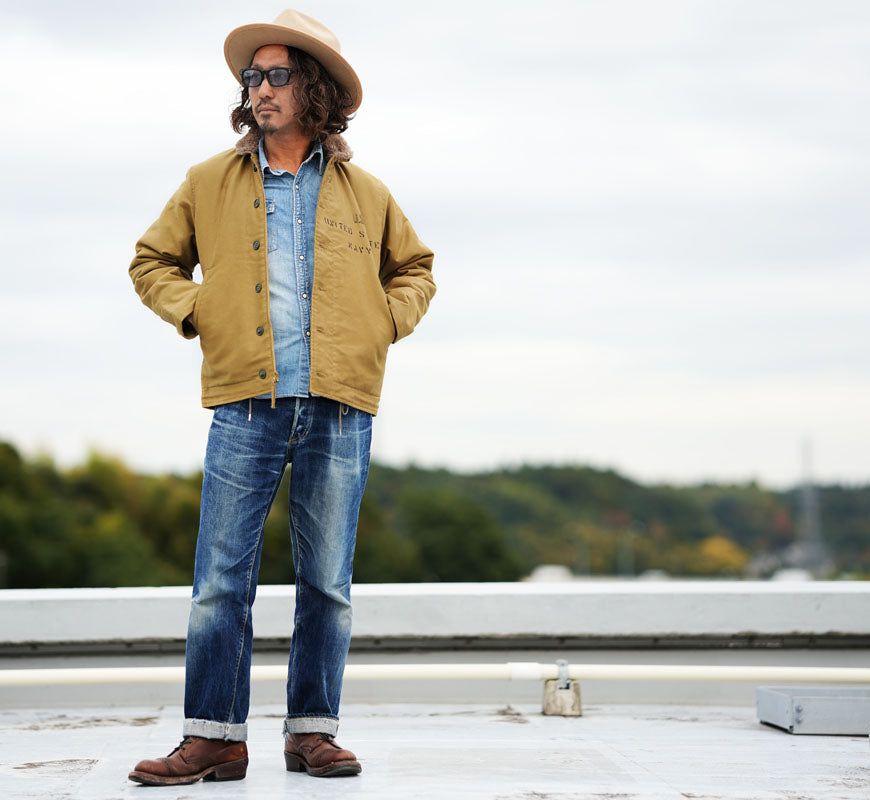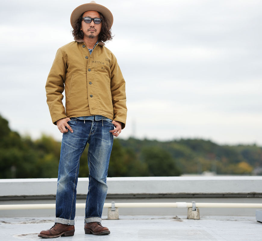 ![]() モデル 身長175センチ 体重62キログラム サイズ38を着用 N-1デッキジャケットは同素材のトラウザースとセットで第二次世界大戦から朝鮮戦争にかけて米海軍の艦艇乗員用として採用された。 表素材には他のデッキジャケット同様に通常"ジャングルクロス"と呼ばれるコットングログランが使用され、裏地には遮風性と保温性に優れた アルパカモヘア・ウールパイルを使用している。N-1のネイビーブルーモデルは1944年に採用され、翌1945年にはカーキモデルが支給された。 その変更点はカラーだけでなく、袖口の内側に縫い付けられていたアルパカモヘアの省略、ライニング脇下と裾コード部に付いていた ループの簡略や裾コード部アイレットの大型化、脇下アイレットの位置など顕著な違いを見せている。 重量:1550g ![]() バズリクソンズはシュガーケーン・サンサーフなどヴィンテージ系アメリカンカジュアルブランドを擁する東洋エンタープライズ社のミリタリーブランドです。同社とミリタリーとの関係は古く、同社の前身企業である港商事時代に米軍ベースにスーベニアジャケット(スカジャンなど)などの商品を納入していたというルーツを持ち、1993年にはフライトジャケットのファーストを発売。以後次々と復元されるミリタリーウエアはサンサーフのハワイアンシャツ、シュガーケーンのデニムウエアーと同様、どれも完璧な出来ばえです。 ![]()