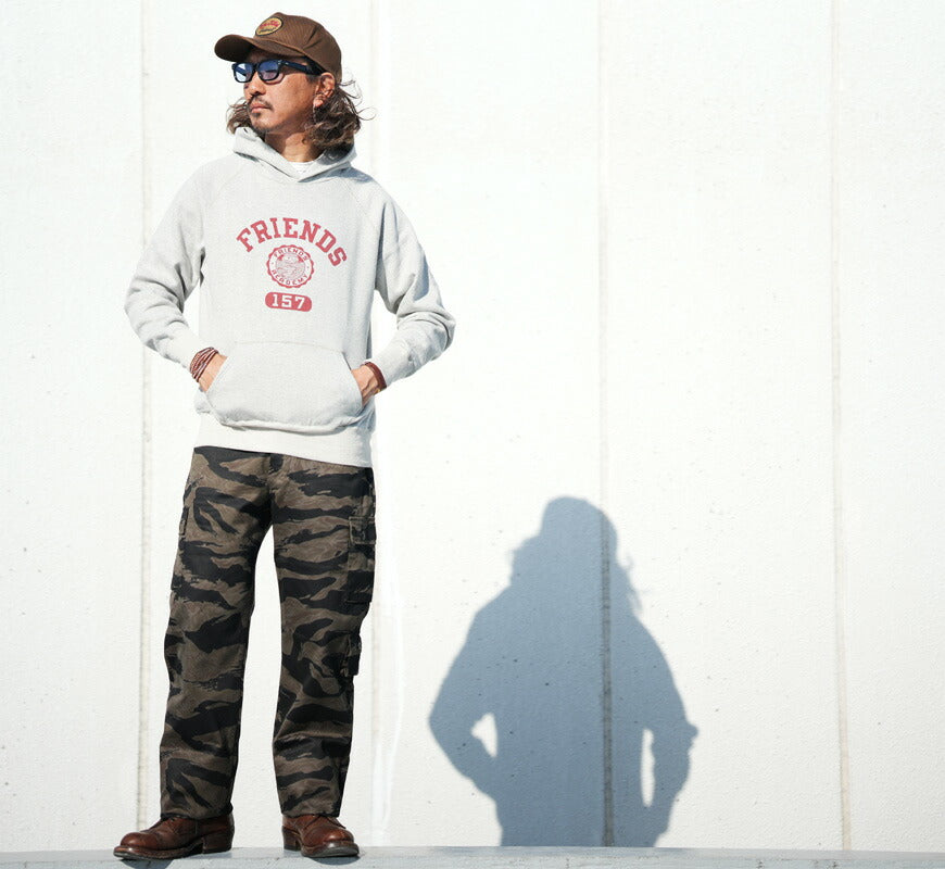 サイズの計測方法についてはこちらをご覧ください。 素材 コットン100% 生産国 日本 カラー ブラック 備考 サイズは実寸を計測し平均値を記載しております。若干の個体差はございますので、ご了承ください。 商品に関して 当店の取り扱い商品はヴィンテージアイテムをベースとしたデザインの商品が多数ございます。雰囲気を重視するために若干の縫製のずれ、生地の色合いや加工による風合い、色ムラなど、仕上がりが異なる場合もございますが、それらも商品の魅力としてご理解下さい。また商品の仕様(縫製・パーツ・色合い・サイズ等)は予告なく変更される場合がございます。以上の点をご理解いただいた上でお楽しみいただければ幸いです。 |