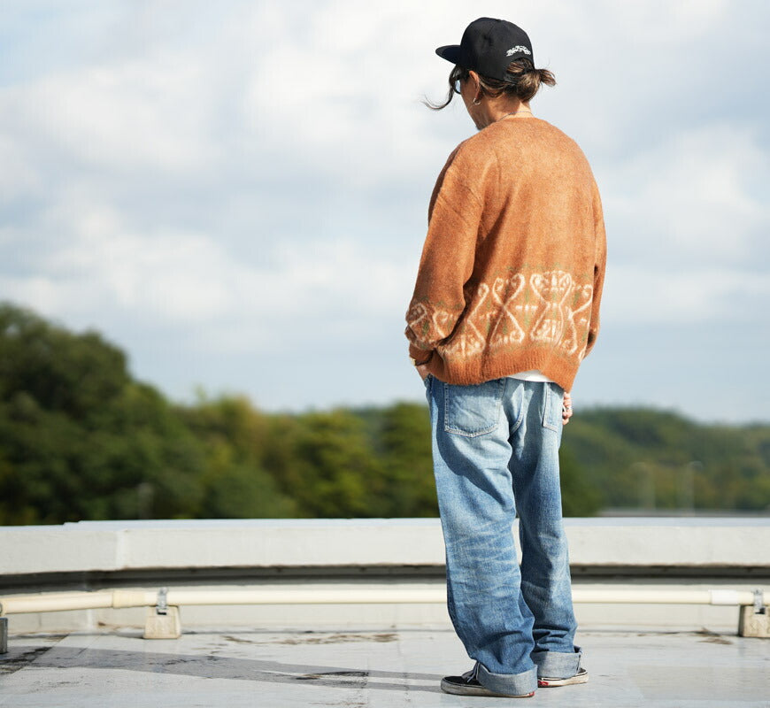 ![]() <モデル:身長175cm 体重62kg Lサイズを着用> 1950年代から1960年代のモヘアカーディガンをベースにした、リラックス感のあるざっくりと羽織れるカーディガンです。 アクリルナイロンウール混紡のヂャガードニットに、起毛加工を施すことでモヘアのような長い毛足の膨らみを表現しています。 西海岸の反体制的ストリートのカルチャーが持つ世界観を、ハートのモチーフに再構築し ヂャガードニットに落とし込んでいる。 重量:380g ![]() 1900年代初頭、古き良き時代のヴィンテージウェアをベースに独自のエッセンスを加え「大人の不良」スタイルをコンセプトに、流行に左右されないクオリティーの高いアイテムを展開するグラッドハンドの姉妹ブランド、ギャングスタービル。 ![]() ネイビー ![]() ブラウン ![]() <モデル:身長175cm 体重62kg Lサイズを着用>