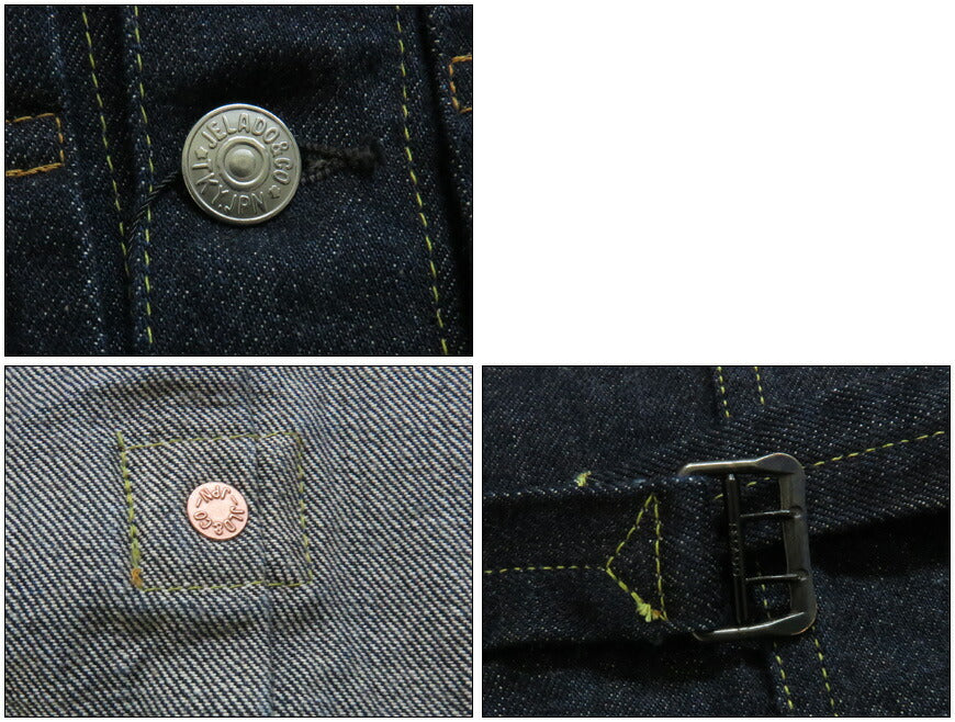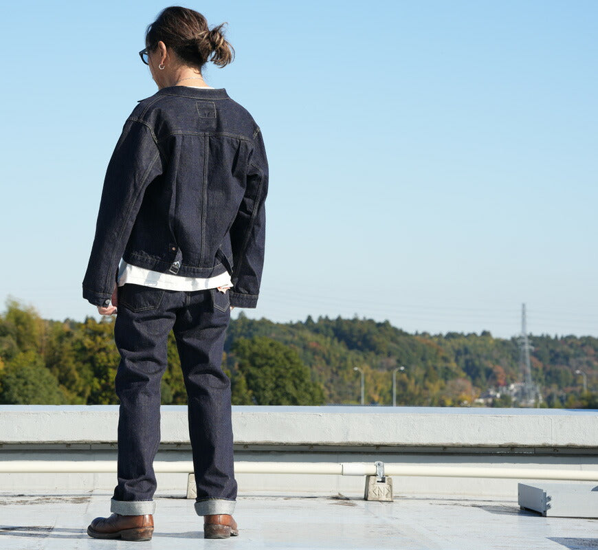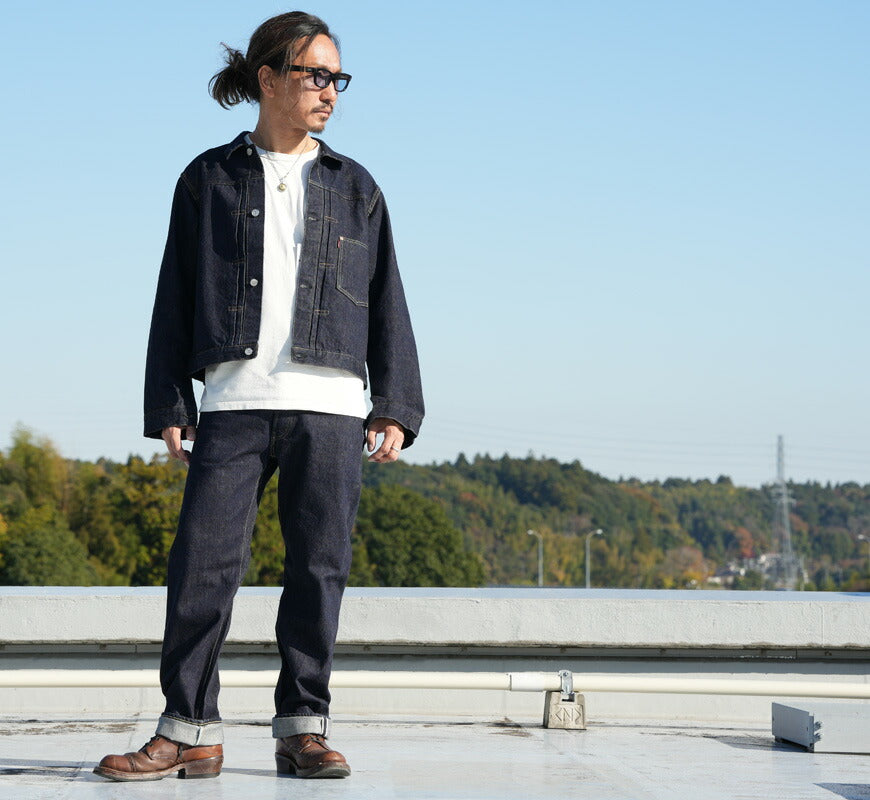 ![]() モデル:身長175cm 体重62kg Lを着用 約5年の歳月を経て、LASTRESORT DENIMの最高峰となる金タグを使用した大戦モデルを完成させました。 本作は、1942年8月にWPB(War Production Board=軍需生産本部)が物資統制のために出した法令「L-181」に則り、 当時の工場が「Simplified Model」として生産していた可能性を踏まえて製作。弊社所有のDEADSTOCKデニムを解析し、 国の検査機関で素材データを取得。その数値に基づき、糸の撚りや打ち込み本数を調整し、 現存する最古の織機であるTOYODA G3を使用して再現しました。 生地には、米綿100%のディープサウスを採用し、6番・7番・8番の3種類の番手をランダムに配置。 ヴィンテージデニム特有の不規則な色落ちを実現しています。緯糸には、長さ38mmの最高級超長綿「スヴィンゴールド シュプリーム」を使用。 ロープ染色はデッドストックを参考に深みのあるピュアインディゴで染め上げ、TOYODA G3織機で経68本×緯47本の打ち込みを施し、 しなやかで滑らかな穿き心地を実現しました。デザインは、弊社所有のS506XX初期型をベースに、当時の大戦モデルの雰囲気を忠実に再現。 通常ラインで使用される刻印入りの付属を再現し、ポケットにはフラップを付けず、シンプルな1stモデルの仕様を踏襲しています。 30年代から使用されていたリベットの在庫をそのまま流用したという設定のもと、「JELADO Co」の"o"を小文字にした特注リベットを製作。 尾錠も30年代のバックルを型から再現し、鉄製で仕上げました。また、一部のダブルステッチにはヴィンテージの個体を再現した レインボーステッチを採用。着込むほどに奥行きのある色落ちが生まれ、ワンウォッシュでは味わえない独特の風合いを楽しめます。 デッドストックの解析から生まれた、現代で再現可能な最高峰のデニムジャケット。この究極の一枚をぜひ体感してください。 重量:830g ![]() JELADOは2004年創業。半世紀以上前にアメリカで生まれた"AMERICAN VINTAGE"をベースに、それらを現代のファッションへと昇華。プロダクツはすべて日本で製造。なぜならば、企画段階で意図した絶妙なニュアンス、想いをカタチにできるのが世界で日本だけだから。 ![]()