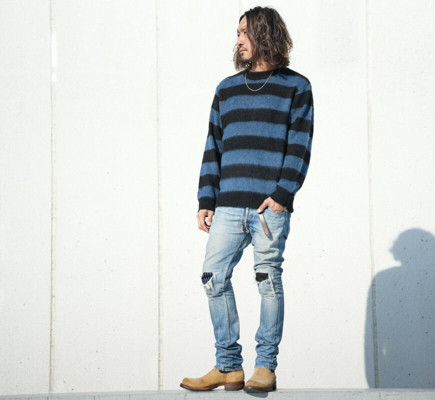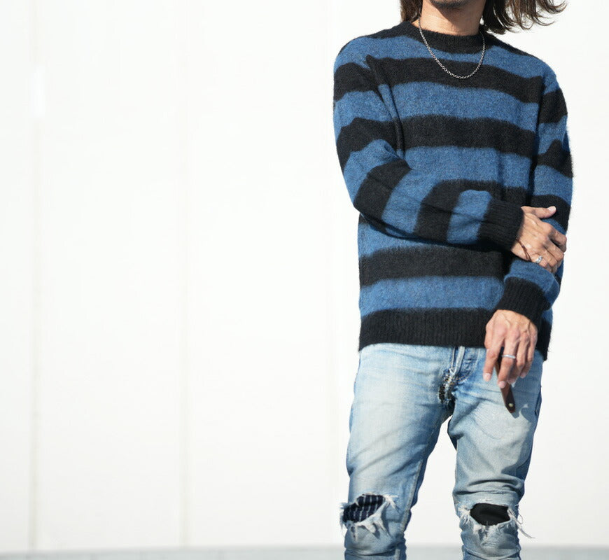 ■JELADO ジェラード クルーネック ボーダー モヘアセーター Lithium RG13839