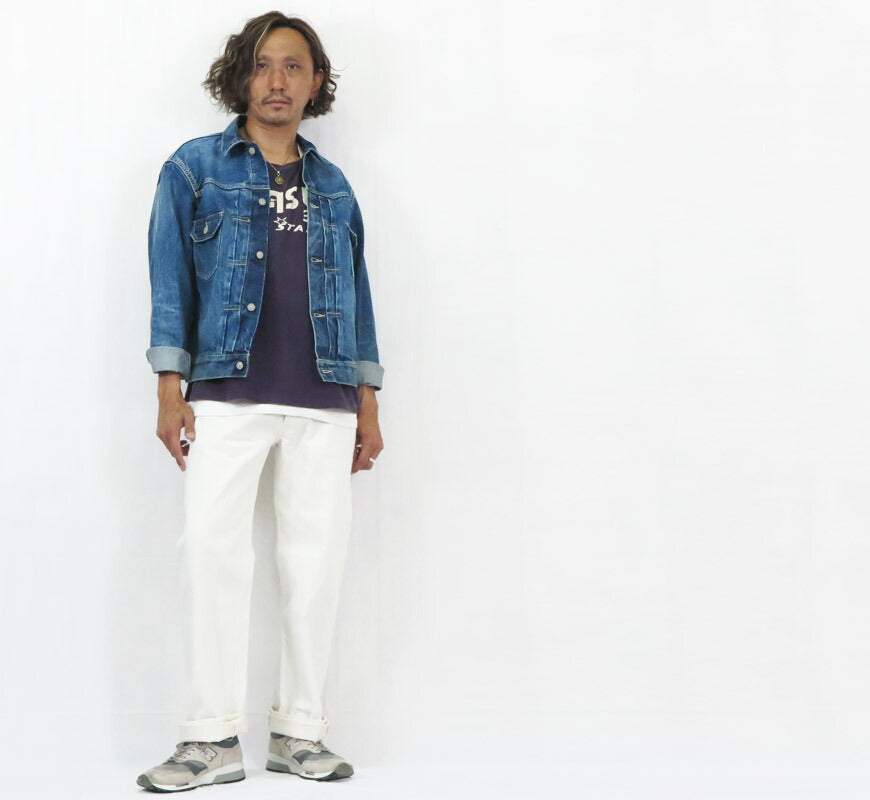 ![]() <モデル:身長175cm 体重62キログラム 32を着用> 1940年代後半のジーンズにみられる贅沢なディテールを余すところなく再現したシュガーケーンの代表作「1947モデル」を 経糸にホワイト、緯糸に生成の糸を使用したオリジナルのホワイトデニムで仕上げた。 経糸7番×緯糸7番のムラ糸を旧式のシャトル織機で織り上げた13オンスのセルビッジデニムであり、 両脇に赤耳を確認できる。同じホワイトデニムを使用したジャケットとセットアップで着用可能。 重量:810g ![]() 長年に渡り、徹底したこだわりのボタンダウンウエアーを作り続けているSUGAR CANE(シュガーケーン)は、バズリクソンズ・サンサーフなどフライトジャケットやコレクタブルハワイアンシャツブランドを擁する、東洋エンタープライズ社のヴィンテージアメリカンカジュアルウエアーの老舗的ブランドです。