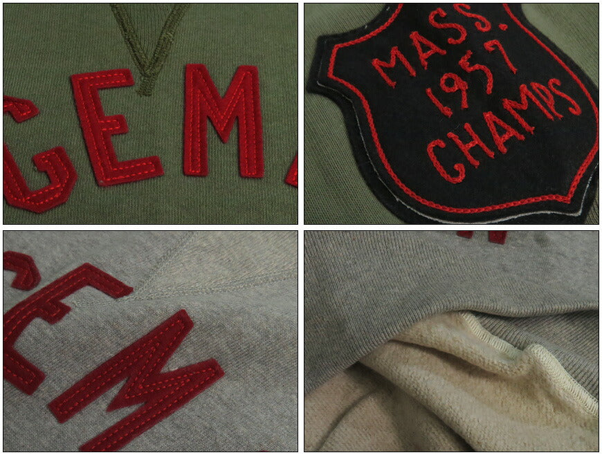 ![]() 身長175センチ 体重62キログラム サイズ40を着用 アーチ状の2段フェルト、マサチューセッツ州のチャンピオンレタリングが施された フェルトベースのチェーン刺繍というスペシャル仕様。フェルトと刺繍の経年変化も楽しみ。 カットソーがウールからコットンに変わった1930年代からある挟み込み仕様の腰リブ。 首まわりには伸縮に富むV字のフライスを前後に配した四本針仕様のスウェットです。 肩口から垂直に落ちる袖口のセットインスリーブはややソリッドな印象を受ける シンプルなデザインですが、腰帯のバインダー仕様は着込むほどにアタリが生まれ経年変化を楽しめます。 ・首周りもフラットシーマで縫製しており、頑丈な仕様です。 ・袖口もフラットシーマのミシンにて縫製することで優しい肌あたりを実現しています。 ・袖リブは'30年代から存在しているバインダー式を採用し、独特なアタリが出ます。 ・デザインは染み込みプリントが施されています。 重量:540g ![]() 1995年の創立以来、ファッションという流行に左右される業界に在りながら、決してそれに流されない、 「ヴィンテージ古着の忠実な復刻」というテーマを追い続けているブランドです。 縁あって出遭った一着のヴィンテージを、それが生産された時代の背景を考察し、 糸の一本から生地、縫製、そして洗い加工にいたるまで、徹底的に研究しています。 ![]() ![]() ブラック ![]() ネイビー ![]() オリーブ ![]() ヘザーグレー ![]()