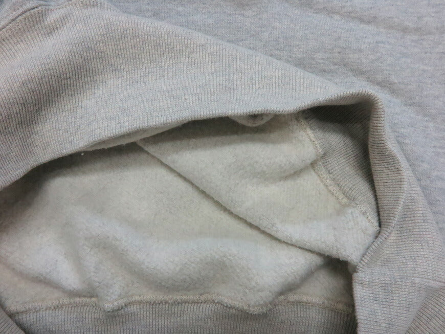 新品なのに古着の風合いを楽しんでいただけるセコハンシリーズのスウェット。 首回りは広めで、全体的にゆったりとしたシルエットです。 ラグランスリーブなので肩回りもゆとりがあり腕も動かしやすくなっています。 ヴィンテ−ジ古着の持つ色合い、風合いをリアルに再現しながらも過度な加工ではないので ダメ−ジがない「極上コンディションの古着」というイメ−ジです。 襟回りや袖など、少し日焼けして褪色したような色合いになっています。 ライトで柔らかい生地感とややゆったりめのサイズ感、 街でも部屋でもリラックスできるデイリ−ウェアとして最適。 ゆるめの着こなしが好きな方には特におすすめです。 ネイビー/ブラウンはひび割れプリント、クリーム/ヘザーグレーは染み込みプリントです。 重量:420g ![]() 1995年の創立以来、ファッションという流行に左右される業界に在りながら、決してそれに流されない、 「ヴィンテージ古着の忠実な復刻」というテーマを追い続けているブランドです。 縁あって出遭った一着のヴィンテージを、それが生産された時代の背景を考察し、 糸の一本から生地、縫製、そして洗い加工にいたるまで、徹底的に研究しています。 ![]() クリーム ![]() ネイビー ![]() ブラウン ![]() ヘザーグレー