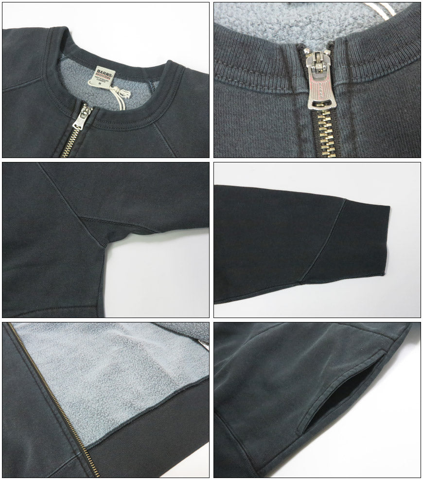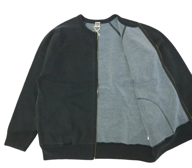 ■バーンズ BARNS 長袖 スウェット アスレチックジップアップカーディガン クルーネック ピグメント染め 裏起毛 BR-25467