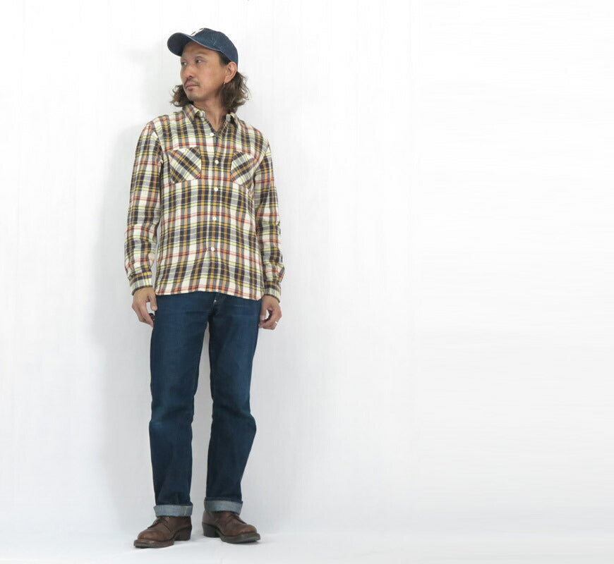 ■フラットヘッド THE FLAT HEAD チェック フランネルシャツ FN-SNR-014L