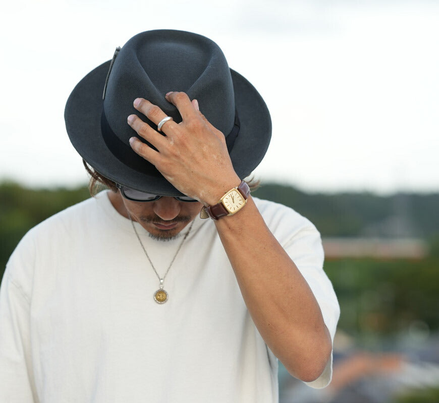 ![]() クラシカルで根強い人気のあるショートブリムの新型、LEADBOY。 美しい曲線のフォルムで、 クラウンはティアドロップ。 カラー展開も豊富でハット初心者から玄人まで、 流行に左右されないデザイン。万人に似合うデザインのハット。 M(58cm)・L(60cm)・XL(62cm)の3サイズ展開で、 内側のスベリ(汗止め)の内部にストラップを装備し、 1~2cmのサイズダウンの調整が可能なのもうれしいポイント。 Mr.FATMAN はハットショップ THE FAT HATTER TEAM が監修・デザインし、 その卓越した技術・経験を持ち、THE FAT HATTER のイズムまで 理解した日本を代表する帽子専門工場と共同で生み出す、日本製の帽子ブランドです。 この度、フェルトハットメーカーと競合し、ウールフェルトハットを THE FAT HATTER から強く監修・打ち出されたアイテムがJ.J. WILLIAMS FEDORAである。 < SIZE > M/ 内径:58cm BRIM:5cm CROWN:10.5cm L/ 内径:60cm BRIM:5cm CROWN:10.5cm XL/ 内径:62cm BRIM:5cm CROWN:10.5cm <COLOR > BROWN、BLACK、GRAY < SPEC > 素材:本体 /Wool100% 原産国:MADE IN JAPAN 品番:6253005 重量:130g < J.J. WILLIAMS By Mr.FATMAN コンセプト> 時代は禁酒法に翻弄された 1926 年。 NEW YORK 北部を拠点とする HAT MAKER " J.J WILLIAMS HAT COMPANY and CO"J.J WILLIAMS BOSS こと通称 MrFATMAN は、 その豪快な手腕で、NEW YORK 中の各界著名人・政治家・文豪・歌手・マフィア等のハットを 一挙に引き受け その名をアメリカ中に轟かせる。 豪快にして大胆、仲間も多いが敵も多く、 常に護衛に守られ、その地位を常に狙われ続けている。 生涯孤独で、相棒は イングリッシュブルドッグの Joe と共に NEW YORK Fifth Avenue の5つ星ホテル暮らし。 ・J.D Pistol ・The White Suits ・Gambler ・Gambler ・The White Lady ・参謀・職人 A・職人 B・見習い・経理 その一時代を築いた HAT MAKER6人のお話し。 ![]() 原宿にアトリエを構える帽子工房、「THE FAT HATTER」がプロデュースするハットブランド。ハット黄金期の1950年代のカルチャーをベースに日本の優れた技術・経験を持つ工場で製作。 ![]() ![]() ブラック ![]() ![]() ![]() グレー ![]() ![]() ブラウン