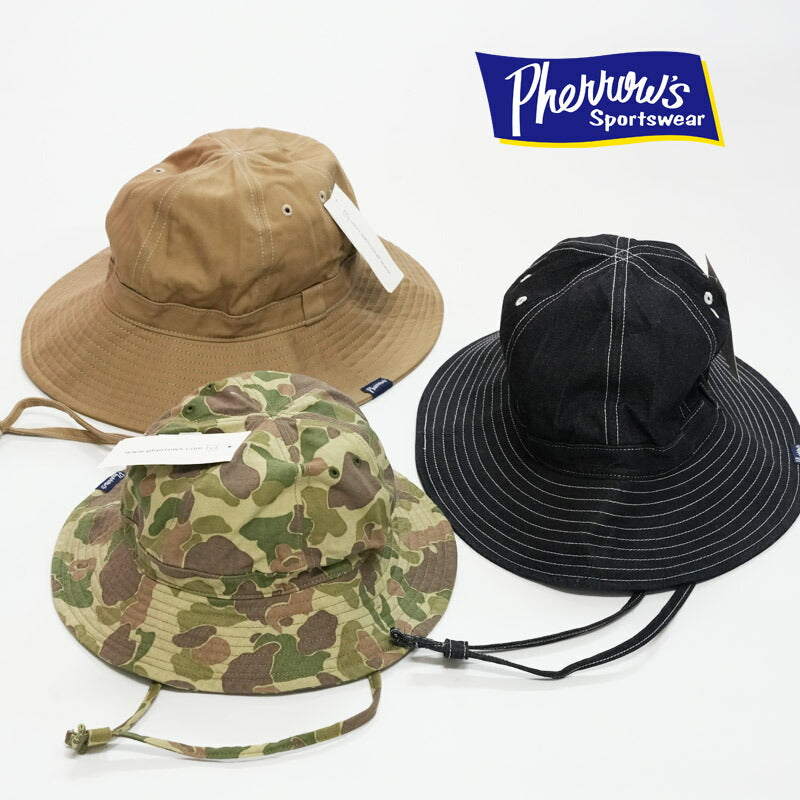フェローズ Pherrow's U.S.NAVY ミリタリー ジャングルハット 迷彩/カモフラ/ベージュ/デニム PJH1 【2025年秋冬新作】