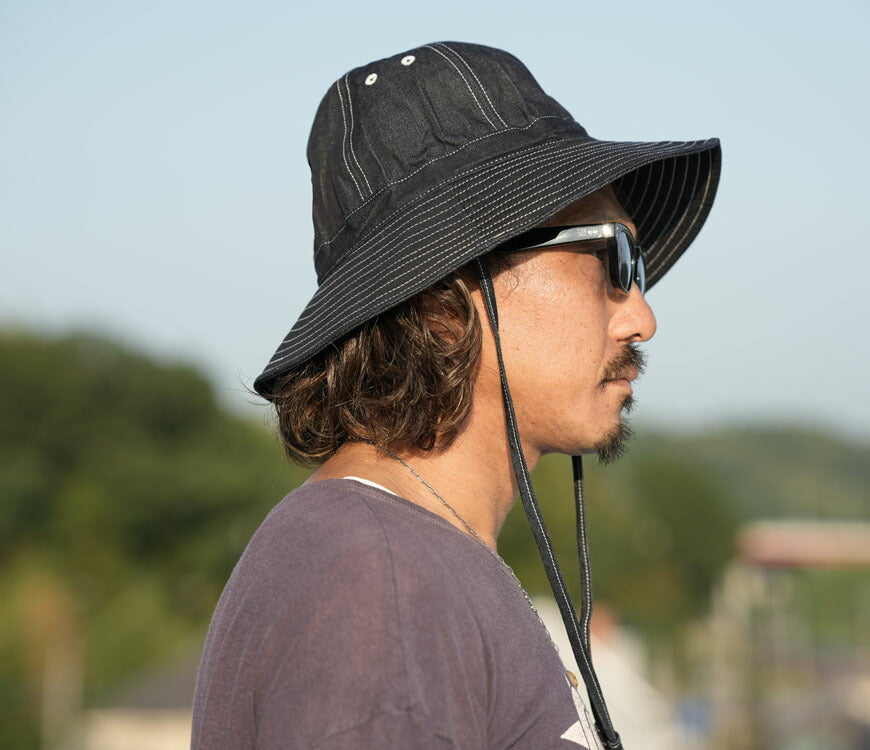 40年代のUS NAVYのデニムハットをデザインソースとした定番ハット。 ジャングルブーニーなどに見られるストラップを加え、クラウンをやや深くアレンジ。 厚みのある生地を使用しているため、被らない時には畳んで収納することも可能。 洗いをかけるごとにクタクタになっていくので、ヴィンテージライクな経年変化も楽しめます。 ツバを長めに設定しているため、顔はもちろん忘れがちな耳や首回りもしっかりガード。 普段使いはもちろんですが、一日外にいるキャンプや登山、フェスなどには特におススメです。 頭周り:約60cm ツバ:約7~8cm 深さ:約12cm ※製品誤差として1~2cm程度、表記サイズと異なる場合がございます。 素材:コットン100% 生産国:日本 重量:130g ![]() 90年代初頭の第一次アメカジブームの頃から第一線で活躍しつづける、アメカジ界の中心的存在。 特に、代表でありデザイナーである志村氏の卓越したセンスから生まれる、 独創的かつヴィンテージ的な要素・クオリティーを持つアイテムの数々は、フェローズならでは 現在もなお、日本のアメカジシーンを牽引する存在として支持されています。 ![]() ![]() カモフラ ![]() ![]() ベージュ ![]() ![]() デニム