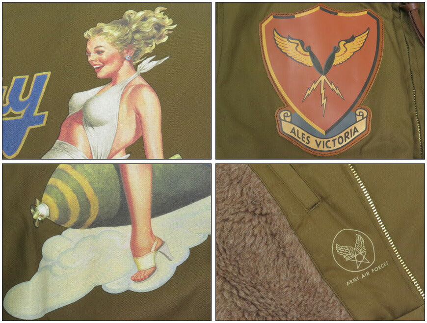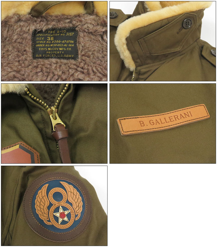 ![]() モデル:身長175cm 体重62kg 40を着用 1943~1944年の約1年の短期間に大量生産されたA.A.F.初のコットン製飛行服、B-10。今季はいくつかのコントラクターで製造された 白い(ナチュラルカラーの)ムートンファーカラーに加え、カフス&ウエストに赤リブを盛り込んだ。 海軍のG-1に倣ったことが窺えるパターンは動きやすく、さらにアルパカウールパイルとムートンカラーによる 鉄壁の保温力は真冬のアウターとして非常に頼もしい存在となる。 第8航空軍(8th AF) 第385爆撃航空群(385BG)・第 548爆撃飛行隊(548BS)所属のクルーをイメージし、 ホワイトムートンカラ-&赤リブ採用のB-10をカスタム。右胸に385BGのレザーパッチ、左肩に8th AFのレザークラフトパッチ、 ネームプレートを配し、 背中には彼らの飛行服に描かれたバックペイントをブラッシュアップしたピンナップガールで豪華に彩った。 重量:1380g ![]() 岡本博プロデュースの新ブランド 【トイズマッコイ】古き良き時代のアメリカ製品のリアルな造りを追求し、そのスタイルに自社のアレンジを加え、 ハイクオリティーな製品を送り出す。バイカーズアイテムを中心に、 本物のアメリカンカジュアル製品取り揃えています。 ![]() ![]()