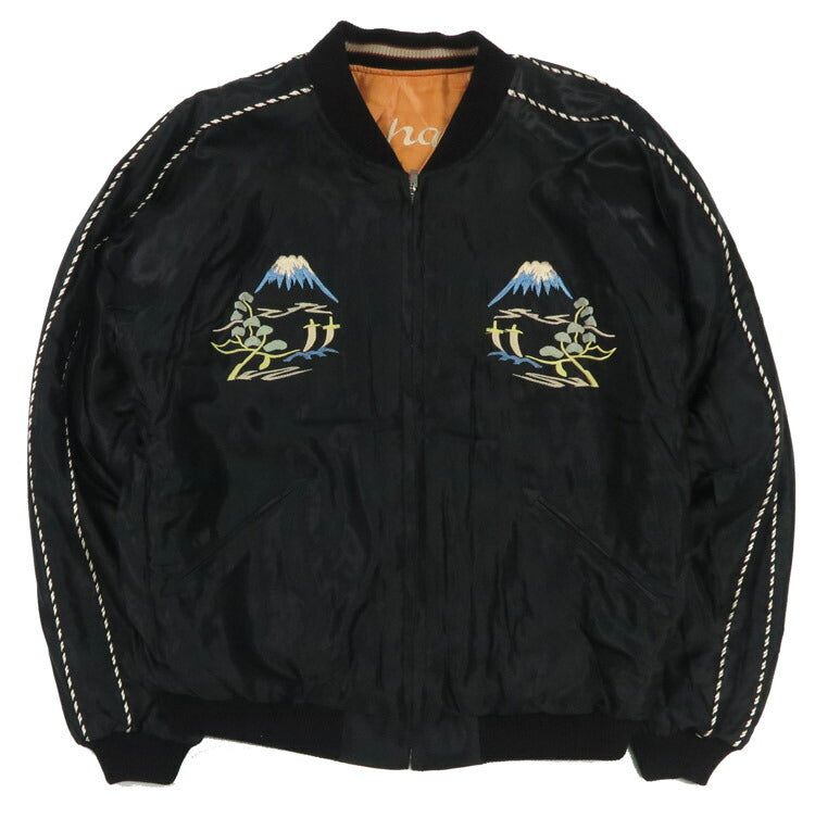 オレンジ×シルバーのボディに白虎が咆哮する1950 年代初期の作品。白を基調とした色糸を使って針足の方向を自在に操り、 刺繍の立体感で虎の毛並みや縞模様、岩場に乗り上げた前足の躍動感を表現。胸の虎も通常より大きめで、 迫力の刺繍が特徴。赤ラインの入った黒いリブで全体を引き締めている。 リバーシブル面は、黒一色のボディにブルーやピンクなどカラフルな淡い色糸で日本の風景を描いたランドスケープ柄。 モチーフは冬の風景で、胸には富士山と松、背中には龍やオリエンタルな仏塔、松の木の根元に佇む鹿を刺繍。 当時の米兵にとって、スカジャンは祖国に持ち帰りたくなる魅力的な風景画でもあった。 1950年代初期作品 <ACETATE QUILTED SOUVENIR JACKET> 両面にアセテートを使ったスーベニアジャケットには、 このような中綿入りでキルティング仕様のタイプも存在する。 中綿なしのタイプ同様にスカジャンの歴史の黎明期から作られており、 キルティングステッチは片面にしか入っていないためリバーシブルで2種類の表情を楽しめる。 重量:880g ![]() スカジャン誕生当時から米軍キャンプに納品していた老舗ブランド。 スカジャンのトップブランドとして常に業界をリードしています。 また、シュガーケーンやバズリクソンズなど完璧な出来栄えのアイテムを毎年沢山発表しています。 ![]() ![]() ![]() ![]() サイズ詳細 サイズの計測方法についてはこちらをご覧ください。 素材 表地:アセテート100% 裏地:アセテート100% 中綿:コットン80% ポリエステル20% 刺繍部分:レーヨン100% リブ:アクリル100% カラー 表面:オレンジ 裏面:グリーン 備考 デリケートな素材なのでお洗濯はクリーニング店にご相談下さい。 ヴィンテージの風合いを再現した緻密な刺繍の為、多少の糸飛びやホツレがございます。 商品の特性としてご理解下さい。 サイズは実寸を計測し平均値を記載しております。若干の個体差はございますので、ご了承ください。 商品に関して 当店の取り扱い商品はヴィンテージアイテムをベースとしたデザインの商品が多数ございます。雰囲気を重視するために若干の縫製のずれ、生地の色合いや加工による風合い、色ムラなど、仕上がりが異なる場合もございますが、それらも商品の魅力としてご理解下さい。また商品の仕様(縫製・パーツ・色合い・サイズ等)は予告なく変更される場合がございます。以上の点をご理解いただいた上でお楽しみいただければ幸いです。 |
