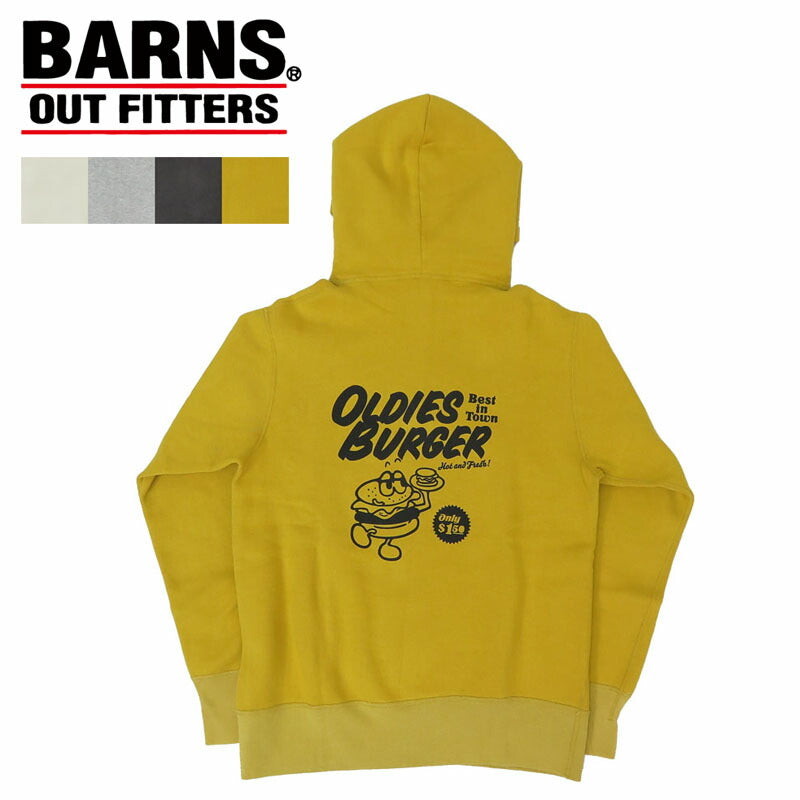 バーンズ BARNS 長袖 COZUN プルオーバー スウェット パーカー プリント "OLDIES BURGER" BR-24394【2024-25年秋冬新作】