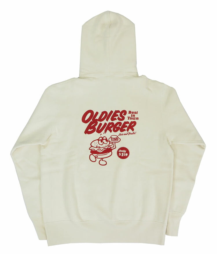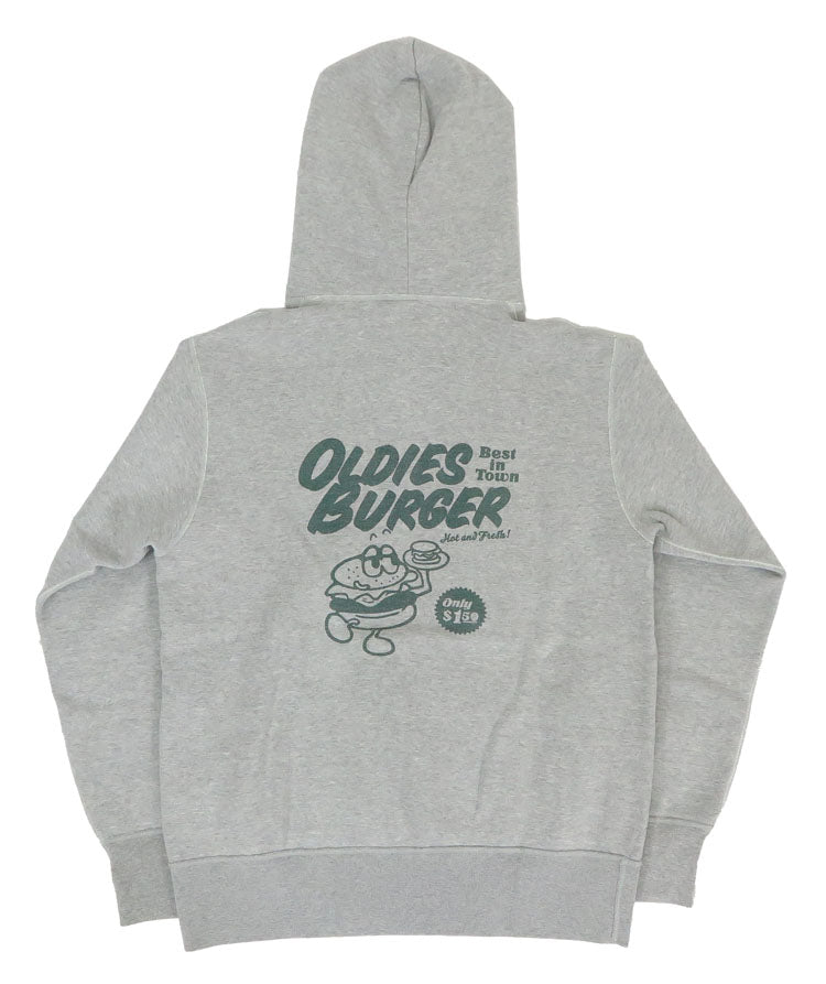 ■バーンズ BARNS 長袖 COZUN プリント プルパーカー "OLDIES BURGER" BR-24394