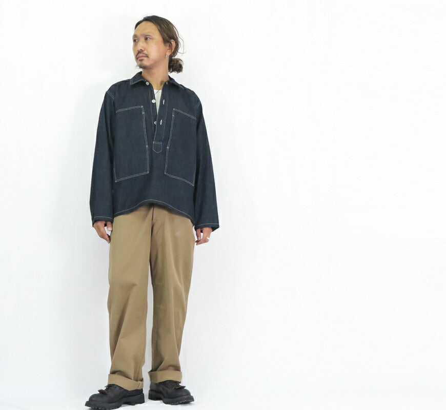 ![]() <モデル 身長175cm 体重62kg 38着用> 第一次大戦中、米陸軍兵はブラウン地のデニムプルオーバーとトラウザースを着用して作業をしていたが、 1919年6月からインディゴ地のデニムを採用した。 トラウザースは1937年に支給され、腰にヨークが存在せずシンチバックの調節ベルトが設けられている。 フロントに2つとバックに2つ、ウォッチポケット1つの計5つポケットの仕様で、 これらのディテールはその後の作業用トラウザースやチノトラウザースに継承されて行った。 重量:680g ![]() バズリクソンズはシュガーケーン・サンサーフなどヴィンテージ系アメリカンカジュアルブランドを擁する東洋エンタープライズ社のミリタリーブランドです。同社とミリタリーとの関係は古く、同社の前身企業である港商事時代に米軍ベースにスーベニアジャケット(スカジャンなど)などの商品を納入していたというルーツを持ち、1993年にはフライトジャケットのファーストを発売。以後次々と復元されるミリタリーウエアはサンサーフのハワイアンシャツ、シュガーケーンのデニムウエアーと同様、どれも完璧な出来ばえです。 ![]()