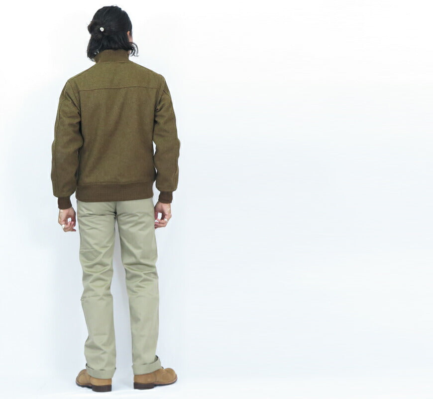 サイズの計測方法についてはこちらをご覧ください。 素材 表地:ウール100% 裏地:コットン100% リブ:ウール100% カラー オリーブ 生産国 日本 備考 ※こちらの商品は、ジッパー部分の滑りが悪くご購入当初は、うまく上がらないケースが多くなっておりますが、 使用するうちにジッパーの滑りも滑らかになっていきます事を予めご理解下さいませ。 サイズは実寸を計測し平均値を記載しております。若干の個体差はございますので、ご了承ください。 商品に関して 当店の取り扱い商品はヴィンテージアイテムをベースとしたデザインの商品が多数ございます。雰囲気を重視するために若干の縫製のずれ、生地の色合いや加工による風合い、色ムラなど、仕上がりが異なる場合もございますが、それらも商品の魅力としてご理解下さい。また商品の仕様(縫製・パーツ・色合い・サイズ等)は予告なく変更される場合がございます。以上の点をご理解いただいた上でお楽しみいただければ幸いです。 |