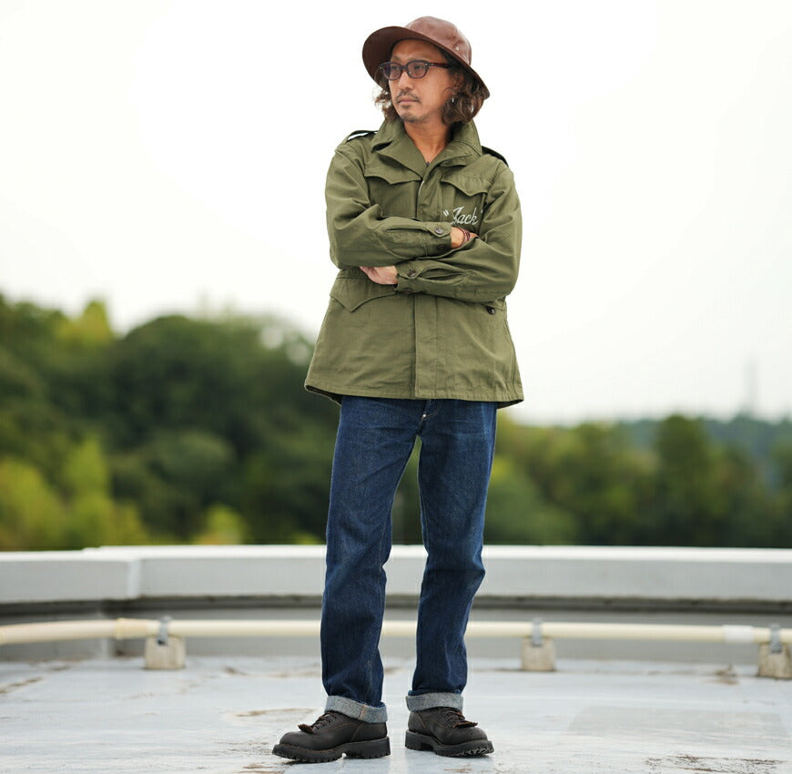 ![]() モデル 身長175cm 体重62kg 38を着用 M-1943フィールドジャケットはM-1941の後継モデルで、それまで陸軍が開発採用した各種野戦服を統合する目的で開発された。 気温や運動性に備え、全ての環境に対応すべくレイヤーシステム(重ね着)を前提としているため、比較的ゆったりとしたフォルムを持っている。 ボタンで留める前立てとポケットフラップのボタンは隠しボタン仕様で、この上に装備品を身に付けても引っ掛かりを回避している。 素材は丈夫で防水性のある厚手のコットンサテンを裏使いした"バックサテン"をオリーブドラブに染め上げ迷彩効果を高めている。 フロントに設置された4つのポケットは容量が十分確保でき、日用品を収納すればザックは必要ないほどである。襟はM-41を受け継ぎ、 開襟でも閉じても着用でき、襟を立てチンストラップを閉じると風の侵入を防いでくれる優れた機能を持つ。 基本的なデザインは完成度が高く、その後採用されたM-51とM-65に継承されていった。 また取り外し可能なフードが付属するので、用途に応じて使い分ける事も可能。 第二次世界大戦中、米軍によってWar Artが開花した。 兵士たちが着用する戦闘服の背中をキャンバスに見立て、絵心のある兵士が筆と塗料を手にして 思い思いに絵を描いた。これがバックペイントの始まりである。 その内容は戦闘で使用する愛機と出撃スコア、故郷に残してきた彼女、兵舎に送られてくる 娯楽雑誌のピンアップガールを模写したものなど、着用者自身の意思やプライドを映し出している為 同じ柄は少なく、個性的でオリジナル性の高いものが多い。アジア圏に駐留した兵士たちは これまで経験したことのない神秘的な文化に触れると、早速ジャケットにそのアジアンテイストを取り入れて 自身の戦闘服をカスタムアップさせた。このジャケットの背面に描かれているのは故郷に残した彼女だろうか。 アジアに伝わる神話・伝説の生物であるドラゴンまでもが高揚する絶世の美女だったという 兵士たちの強い思い入れと美学がこの一着には込められているのだ。 重量:1520g ![]() バズリクソンズはシュガーケーン・サンサーフなどヴィンテージ系アメリカンカジュアルブランドを擁する東洋エンタープライズ社のミリタリーブランドです。同社とミリタリーとの関係は古く、同社の前身企業である港商事時代に米軍ベースにスーベニアジャケット(スカジャンなど)などの商品を納入していたというルーツを持ち、1993年にはフライトジャケットのファーストを発売。以後次々と復元されるミリタリーウエアはサンサーフのハワイアンシャツ、シュガーケーンのデニムウエアーと同様、どれも完璧な出来ばえです。 ![]() ![]()