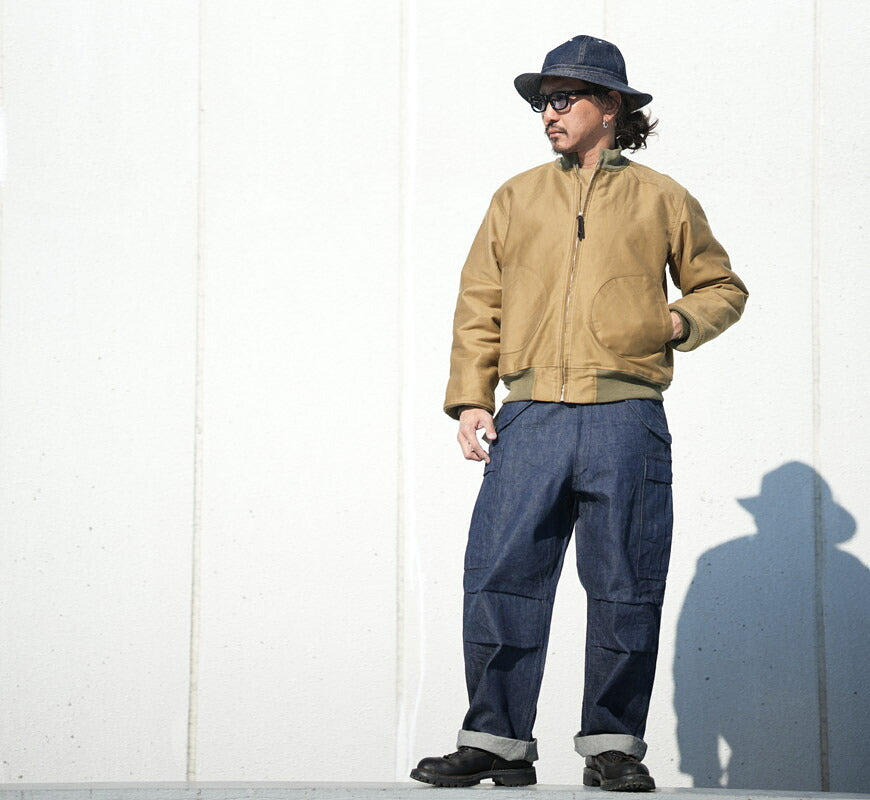 ![]() モデル 身長175センチ 体重62キログラム サイズ40を着用 第二次大戦中に使用されたデッキジャケットは、米海軍の"Special Winter Clothing" に属するアイテムの一つである。 素材は耐風・撥水性のある通称『ジャングルクロス』と呼ばれるコットン・グログランが使用されている。 フロントはジッパーで開閉され、襟と袖、裾に取り付けられたウールリブニットは風の侵入を防ぐ仕様となっている。 また、極寒の海上での作業を考慮し、ジャケットの他に同素材の胸あて付きのトラウザースと布製ヘルメット、 ウール素材のフェイスマスク、レザー素材のグローブ、その他にゴーグル、シューズがセットで、その装備は完全であった。 後期型のデッキジャケットはウールブランケットのライニングだが、初期型はアルパカ・ウールパイルのライニングで、 ウインドフラップが設置されていることと大型のパッチポケットが特徴である。 重量:1600g ![]() バズリクソンズはシュガーケーン・サンサーフなどヴィンテージ系アメリカンカジュアルブランドを擁する東洋エンタープライズ社のミリタリーブランドです。同社とミリタリーとの関係は古く、同社の前身企業である港商事時代に米軍ベースにスーベニアジャケット(スカジャンなど)などの商品を納入していたというルーツを持ち、1993年にはフライトジャケットのファーストを発売。以後次々と復元されるミリタリーウエアはサンサーフのハワイアンシャツ、シュガーケーンのデニムウエアーと同様、どれも完璧な出来ばえです。 ![]() ![]() ![]()