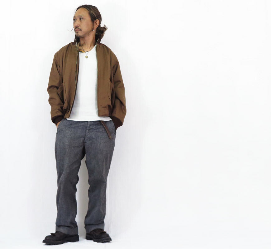サイズの計測方法についてはこちらをご覧ください。 素材 表地:コットン100% 裏地:ウール100% リブ:ウール100% カラー ブラウン 生産国 日本 備考 ※こちらの商品は、ジッパー部分の滑りが悪くご購入当初は、うまく上がらないケースが多くなっておりますが、 使用するうちにジッパーの滑りも滑らかになっていきます事を予めご理解下さいませ。 サイズは実寸を計測し平均値を記載しております。若干の個体差はございますので、ご了承ください。 商品に関して 当店の取り扱い商品はヴィンテージアイテムをベースとしたデザインの商品が多数ございます。雰囲気を重視するために若干の縫製のずれ、生地の色合いや加工による風合い、色ムラなど、仕上がりが異なる場合もございますが、それらも商品の魅力としてご理解下さい。また商品の仕様(縫製・パーツ・色合い・サイズ等)は予告なく変更される場合がございます。以上の点をご理解いただいた上でお楽しみいただければ幸いです。 |