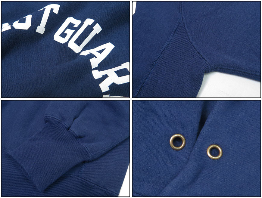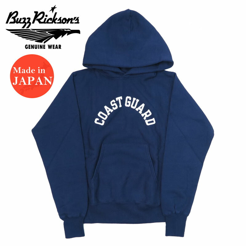 沿岸警備隊のトレーニング時に着用されたスウェットパーカ。 仕様は身頃の生地を横使いし、サイドにリブ素材と切り替えたホリゾンタル・ニッティング。 ホリゾンタルとは「横方向」という意味で、丈の縮みを防止すると共に縦横の伸縮性を意識している。 このような仕様でミリタリーに関連した柄は稀少性が高く、ヴィンテージ市場において価格が高騰している。 ![]() バズリクソンズはシュガーケーン・サンサーフなどヴィンテージ系アメリカンカジュアルブランドを擁する東洋エンタープライズ社のミリタリーブランドです。同社とミリタリーとの関係は古く、同社の前身企業である港商事時代に米軍ベースにスーベニアジャケット(スカジャンなど)などの商品を納入していたというルーツを持ち、1993年にはフライトジャケットのファーストを発売。以後次々と復元されるミリタリーウエアはサンサーフのハワイアンシャツ、シュガーケーンのデニムウエアーと同様、どれも完璧な出来ばえです。 ![]() 128:ネイビー