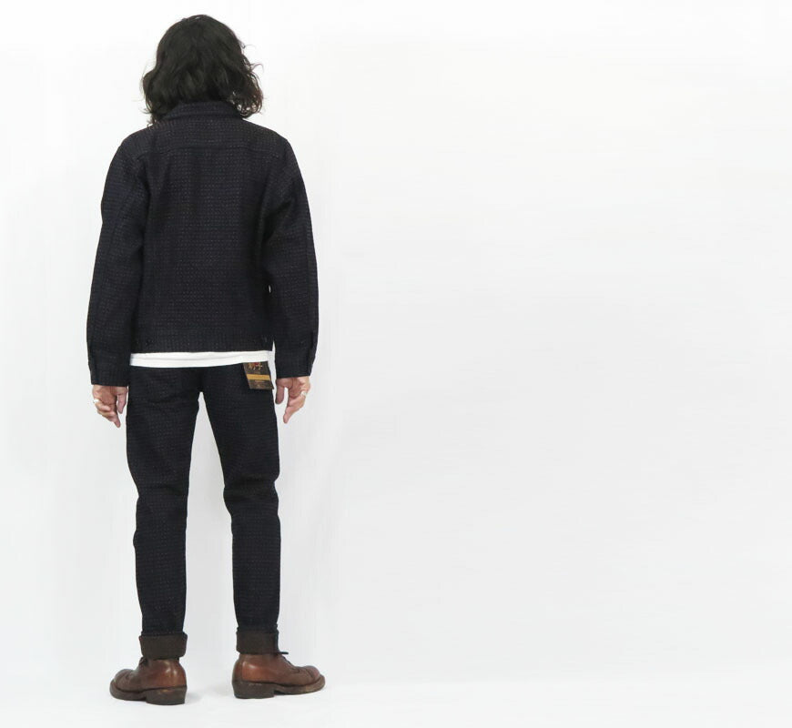 ![]() モデル 身長175センチ 体重62キログラム サイズ30を着用 このデニムでは、経糸の刺し子ステッチ、緯糸に柿渋染めを施しています。 インディゴブルーと柿色が重なり合う事で 独特の赤みがかったデニムが完成しました。 経糸に施されたステッチは洗うごとに縮み、ムラが生じる為 立体的な表情を楽しむ事ができます。 職人の技と日本の伝統が融合して生まれた柿渋デニム。 その風合いや色合いは日本の自然と文化を彷彿とさせる 唯一無二の存在感があります。 シルエットはリラックステーパードになります。 柿渋染めは日本の自然が生み出した伝統的な染料で、その歴史は 900年以上にも遡り日本の伝統的な染色技法として長い間受け継がれてきました。 また漢方薬として用いられ、優れた殺菌・消臭効果があるとされています。 柿渋染めは天日染めともよばれ、日光や空気に触れることで参加し 時間の経過とともに色が変化していき、深みのある独特の色合いを育んでいきます。 重量:860g ![]() 1979年創立したステュディオ・ダ・ルチザンの名には職人工房という意味が込められている。 当時の日本のジーンズマーケットには現在のビンテージレプリカと呼ばれるジーンズ作りの概念はほとんど存在しなかった。大量生産を目的とした効率化の影でジーンズ本体の味を再現する事に夢を追い求めるモノ作りの基盤を作り上げた草分け的ブランドです。