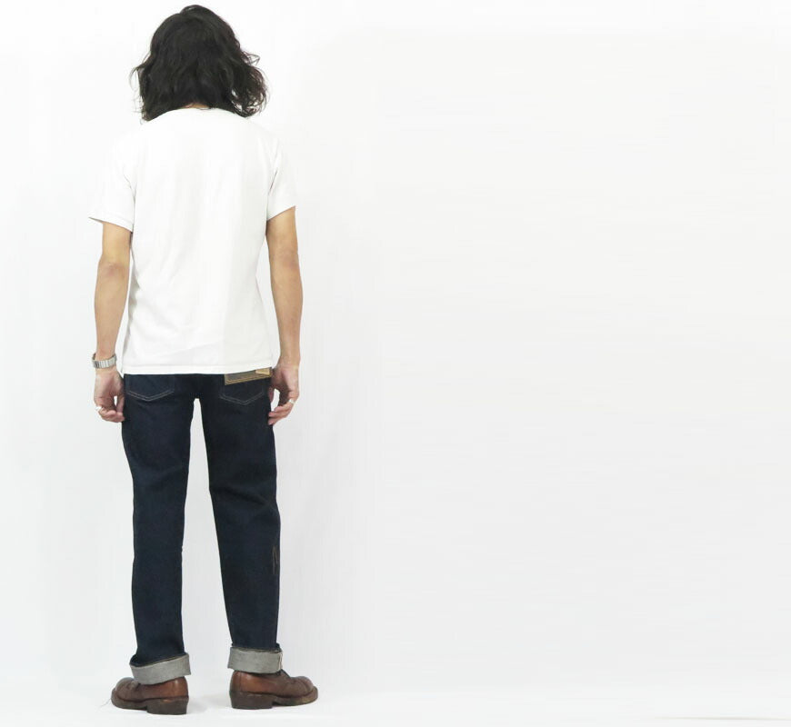 ![]() モデル 身長175センチ 体重62キログラム サイズ30を着用 1940年代のアメリカ。 この頃のジーンズやデニムジャケットは 第二次世界大戦に使用する物資に力を入れる為、 無駄と思われる部分は徹底的に制限され 各部を簡素化するしかありませんでした。 それに加え、ベテランの縫製職人達は軍服の製造を中心に製造し ジーンズをはじめとしたワークウェアの製造は まだ技術の乏しい縫製員が行っていました。 ダルチザンでは1940年代の時代背景を元に 不格好な縫製や簡素化されたディテールを再現し 、 石川台で紡績した13.0ozオリジナルデニム生地を使用しています。 縫製後にベージュカラーのトッピングを施し 当時の無骨で荒々しさのあるデニム地と くすんで酸化したような インディゴブルーの雰囲気を表現しています。 オンス:13.0oz シルエット:ルーズストレート 重量:880g ![]() 1979年創立したステュディオ・ダ・ルチザンの名には職人工房という意味が込められている。 当時の日本のジーンズマーケットには現在のビンテージレプリカと呼ばれるジーンズ作りの概念はほとんど存在しなかった。大量生産を目的とした効率化の影でジーンズ本体の味を再現する事に夢を追い求めるモノ作りの基盤を作り上げた草分け的ブランドです。