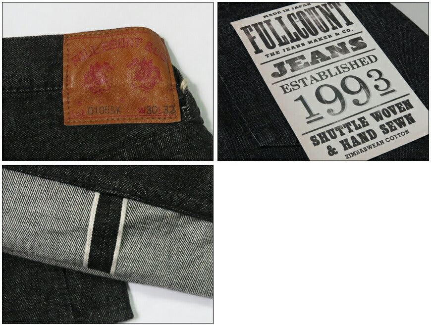 ■FULLCOUNT 0105BK ジーンズ ルーズストレート 13.7oz ブラックデニム ジンバブエコットン