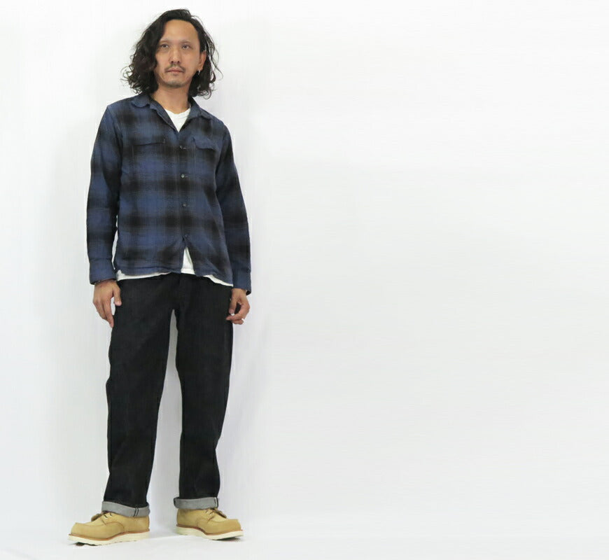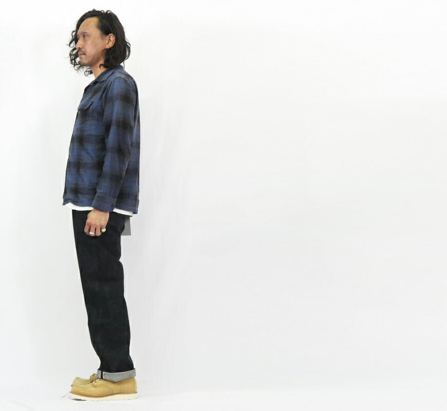 ![]() モデル 身長175センチ 体重62キログラム 30インチを着用 その汎用性の高さから近年益々需要が高くなってきたブラックジーンズ。 インディゴ染めと比較してゆっくりとした経年変化ではありますが、 ロープ染色されたブラックは徐々にタテ落ちも楽しんでいただくことが出来ます。 ゆっくりと織り上げた13.7oz のセルビッチデニムは定番デニム同様 力織機ならではの耐久性と穿き心地を体験していただけます。 「LOOSE STRAIGHT」 1953MODEL より名称変更しシルエットはかなりワイドになり、ヒップハングを強調するため股上の前後差を大きくしました。 ヒップ周りも大きくなっておりますが、フロントのもたつきやヒップ下部の余りが気にならない素晴らしい形となっております。 重量:900g ![]() 単なるレプリカジーンズという枠にとどまらず徹底的にシルエットにこだわっているブランド。 パンツ・トップスどれをとってもバツグンにきれいなラインは 多くのファンをひきつけています。