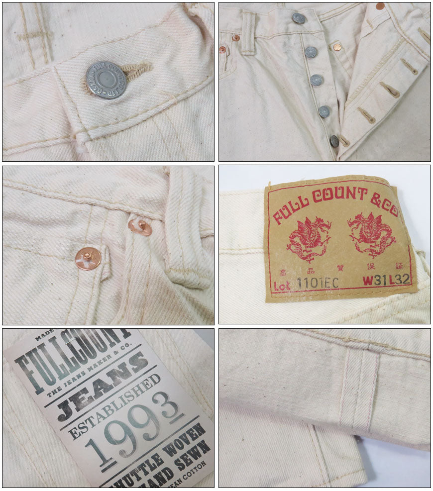 ■FULLCOUNT 1101EC ジーンズ ストレート 13.7oz エクリュホワイト ジンバブエコットン