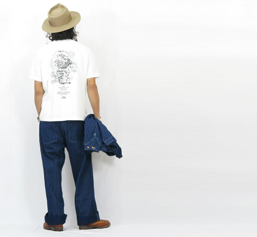 ![]() モデル 身長175cm 体重62kg 32インチを着用 インディゴ染めしたカツラギ(ドリル)素材に、20 世紀初頭、特にレイルローダーに人気があった ドット調ストライプ柄をウォバッシュという手法(抜染)で仕上げたワークパンツ。 シンプルなディティールと太めのシルエットが、着こなしの幅を広げます。 また、カッパーカラーのボタンも当時の雰囲気を演出しています。 同素材のチョアジャケット(FC2015-13)とセットアップでの展開です。 重量:770g ![]() 単なるレプリカジーンズという枠にとどまらず徹底的にシルエットにこだわっているブランド。 パンツ・トップスどれをとってもバツグンにきれいなラインは 多くのファンをひきつけています。