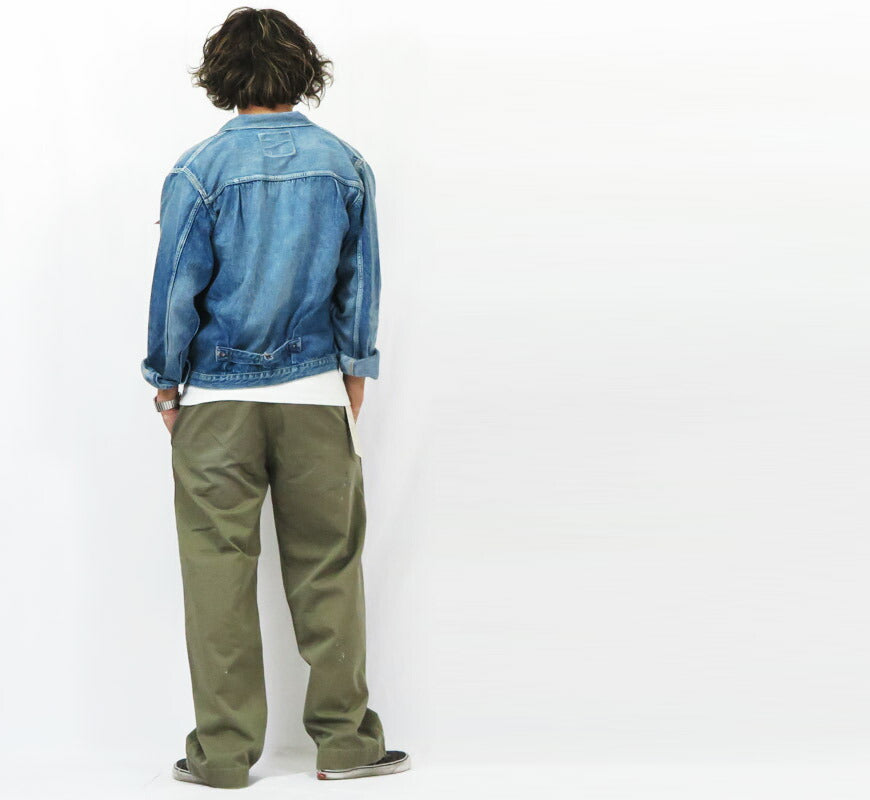 ![]() モデル 身長175センチ 体重62キログラム 32インチを着用 フルカウントの定番 U.S.ARMY 41 Khaki に激しくダメージを加えたもの。 自由を獲得するために戦う人のイメージで作成しました。存在感溢れる表情は シンプルでくたびれた T シャツと相性ピッタリです。 1940 年代初頭から米国陸軍に採用された41カーキをモチーフとした定番チノトラウザーズ。 ダブルステッチの巻き縫い、サイドはスラッシュポケット、太目のシルエット。 両玉縁のバックポケットは2mm 幅で雰囲気抜群。短繊維を徹底的に取り除き、 光沢に優れた上質なコーマ糸を使用したチノを用いております。 重量:650g ![]() 単なるレプリカジーンズという枠にとどまらず徹底的にシルエットにこだわっているブランド。 パンツ・トップスどれをとってもバツグンにきれいなラインは 多くのファンをひきつけています。 ![]() セージグリーン ![]() ブラウンベージュ ![]()