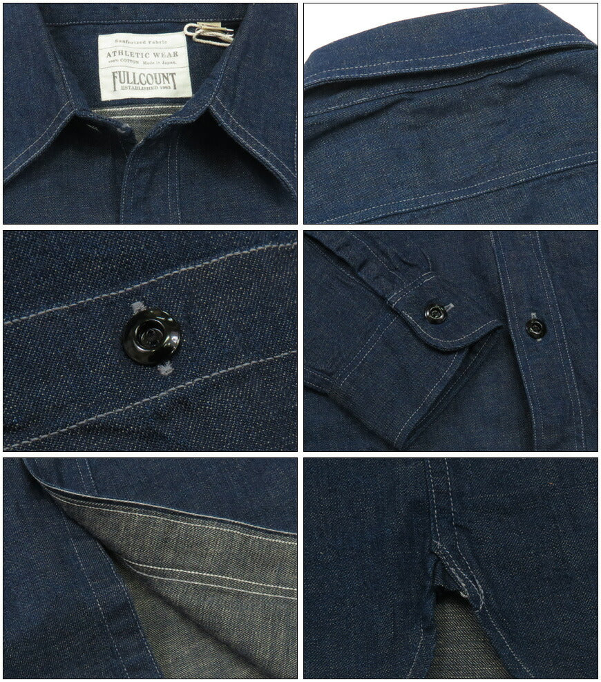 ■FULLCOUNT 8oz PWデニム 長袖 ワークシャツ ワンウォッシュ 4890
