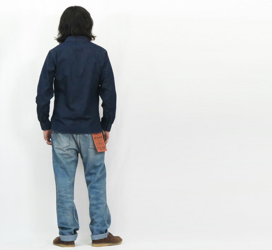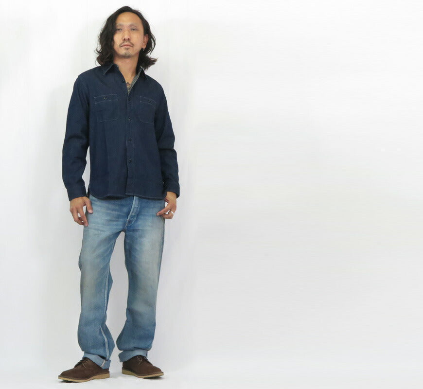 ![]() モデル 身長175cm 体重62kg サイズ38を着用 定番シャンブレーシャツと同じくベーシックで太すぎず、細すぎないサイズ感は 日本人の体形に合わせたシャツ類の中でも不動の人気であるデニムワークシャツとなります。 30年代のUSNアイテムによく見られるヨコ糸がグレーの8ozジンバブエコットン生地を使用。 高番手の縫製糸を使うことで、キメ細やかな運針で丁重に仕上げております。 絶妙なパッカリングと色落ちを是非お楽しみ下さい。 重量:460g ![]() 単なるレプリカジーンズという枠にとどまらず徹底的にシルエットにこだわっているブランド。 パンツ・トップスどれをとってもバツグンにきれいなラインは 多くのファンをひきつけています。 ![]() ![]() インディゴ ワンウォッシュ