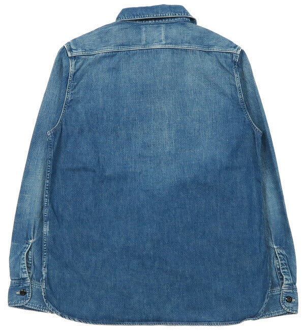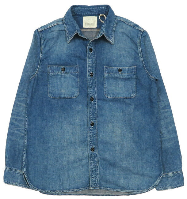 ■FULLCOUNT 8oz PWデニム 長袖 ワークシャツ ハードウォッシュ 4890HW