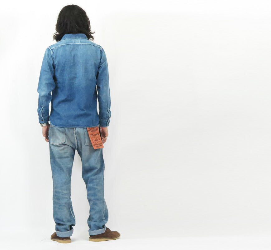 ![]() モデル 身長175cm 体重62kg サイズ38を着用 定番シャンブレーシャツと同じくベーシックで太すぎず、細すぎないサイズ感は 日本人の体形に合わせたシャツ類の中でも不動の人気であるデニムワークシャツとなります。 30年代のUSNアイテムによく見られるヨコ糸がグレーの8ozジンバブエコットン生地を使用。 高番手の縫製糸を使うことで、キメ細やかな運針で丁重に仕上げております。 絶妙なパッカリングと色落ちを是非お楽しみ下さい。 重量:460g ![]() 単なるレプリカジーンズという枠にとどまらず徹底的にシルエットにこだわっているブランド。 パンツ・トップスどれをとってもバツグンにきれいなラインは 多くのファンをひきつけています。 ![]() ![]() インディゴ ハードウォッシュ