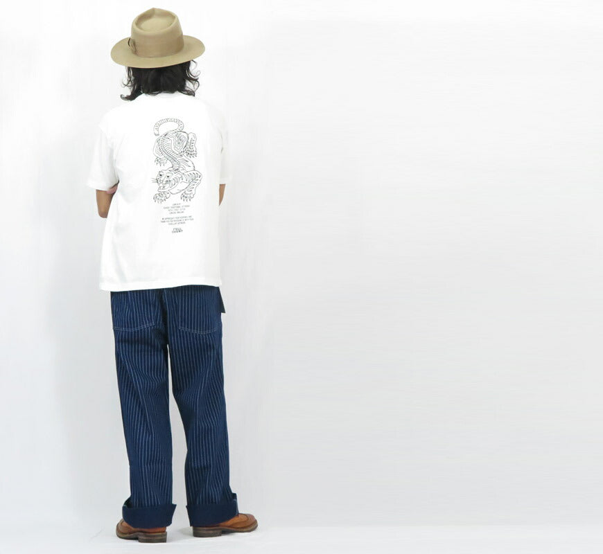 ![]() モデル:身長175cm 体重62kg 42を着用 (ゆったり目に着用しています。ジャストサイズは40) ムラ感とシャリ感のあるBD糸(17/1)を使用したオリジナルボディーのプリントTシャツは 伸縮性も高く、経年変化と耐久性を兼ね備えた7.4oz。 オリエンタルな雰囲気が特徴のロンドンのタトゥーアーティスト、Liam氏のグラフィック。 今回のメイングラフィックである虎を背面にプリント。 重量:230g ![]() 単なるレプリカジーンズという枠にとどまらず徹底的にシルエットにこだわっているブランド。 パンツ・トップスどれをとってもバツグンにきれいなラインは 多くのファンをひきつけています。 ![]()
