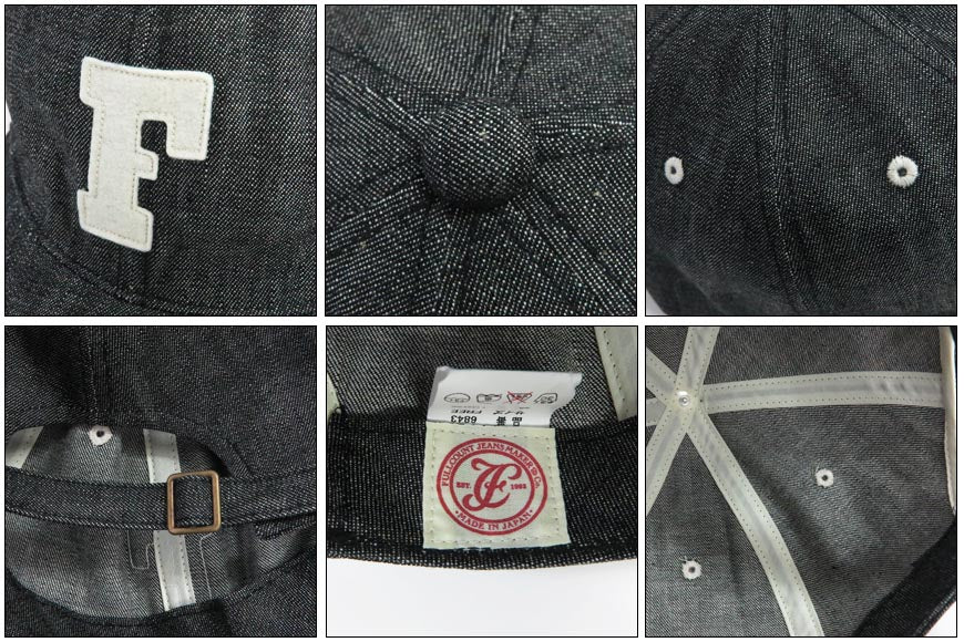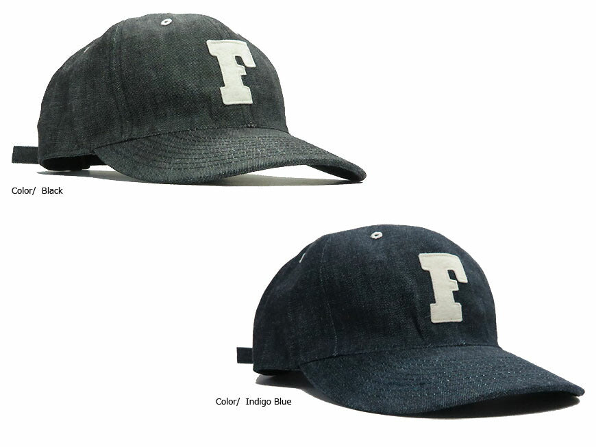 ■フルカウント FULLCOUNT 10oz デニム ベースボールキャップ Fワッペン 6PANEL DENIM BASEBALL CAP 6843