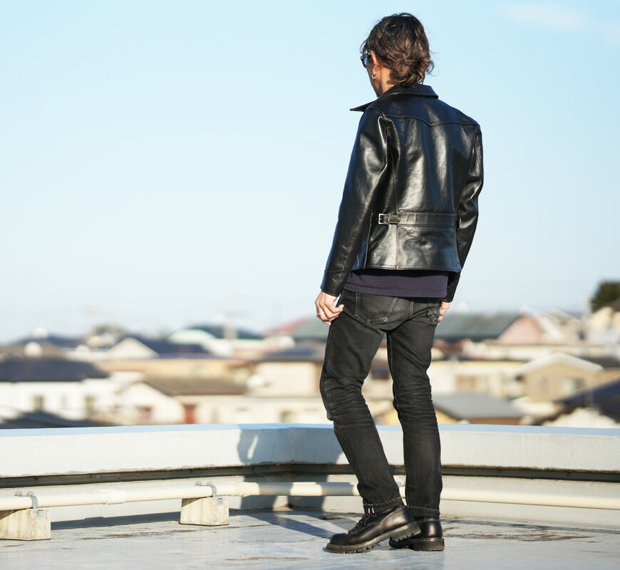 ![]() モデル:身長175cm 体重62kg 38を着用 【バイカー&タウンユースの両立を目指したライダースジャケット】 ライダースジャケットとして、バイクに乗車することを想定したディテールを取り入れながらも、 スタイリッシュに仕上げることで、タウンユースにも対応できるように考案されたライダースジャケット。 ツーリングに出かけてもライダースジャケットとしての着やすさも持たせながら、タウンユースとして、 着用したまま散策しても違和感のないファッション性も併せ持ったハイブリドデザインです。 【フラットヘッドの自社工房STOCKBURG製のシングルライダース】 フラットヘッドのウォレットなどを手掛けている自社レザークラフト工房「STOCKBURG」で製作したホースハイドシングルライダース。 バッグなどの小物製作を経て培った細やかな縫製技術をレザージャケットに落とし込みました。 素材には老舗タンナーの新喜皮革と協力し独自に仕上げたセミアニリン仕上げのホースハイドを使用。 着用と共に茶芯と呼ばれる革の芯地が覗いてくる経年変化が楽しめます。 1940年代のヴィンテージシングルライダースジャケットをベースに、フラットヘッドらしさを取り入れたオリジナルデザイン。 背中にプリーツもない潔いデザインは長年経っても飽きることないスタイルです。 【ライディングポジションが取りやすい形状】 腕を前に上げた際に、二の腕部分が突っ張ることなくライディングポジションが取りやすい袖構造にしています。 袖を前傾になる様にアームホールを縫製することで、前方向に動かしやすくなっているほか、 二の腕部分に少しゆとりを出すことで腕を上げた際の張りを軽減。また、肩の作りもややなで肩にすることで 腕を上げたときの後襟部分が持ち上がってしまうことを軽減。 ヘルメットを着用していても襟でヘルメットを押しあげにくくし、バイクでの着用にも考慮したデザインです。 【「茶芯」が楽しめるセミアニリン仕上げ】 日本国内の老舗タンナー新喜皮革と協力して作り上げたセミアニリン仕上げのホースハイド。 フルベジタブルタンニンで鞣されたホースハイドは独特のコシがあり、着用と共に柔らかく身体に馴染んでいきます。 表面が擦れることで革の茶色い芯が現れてくる「茶芯」と呼ばれる経年変化を楽しめます。 ・1.3mm厚ホースハイド ・フルベジタブルタンニング(新喜皮革) ・仕上げ:セミアニリン(茶芯) ・ライニング:レーヨンカルゼ ・UNIVERSAL ZIPPER ・鉄製打抜きFHバックル ・返し縫い ・STOCKBURG製 重量:1810g 箱を含む総重量:2570g ![]() 古き良き50年代のアメリカンテイストを基本としつつ日本人のスタイルやファッションに合うようにアレンジした本格派アメカジブランド。コスト度外視で高いクオリティーを追及。丈夫な生地・縫製が特徴で使用者が着古す事で本当のカッコよさが生まれます。 ![]() ![]()