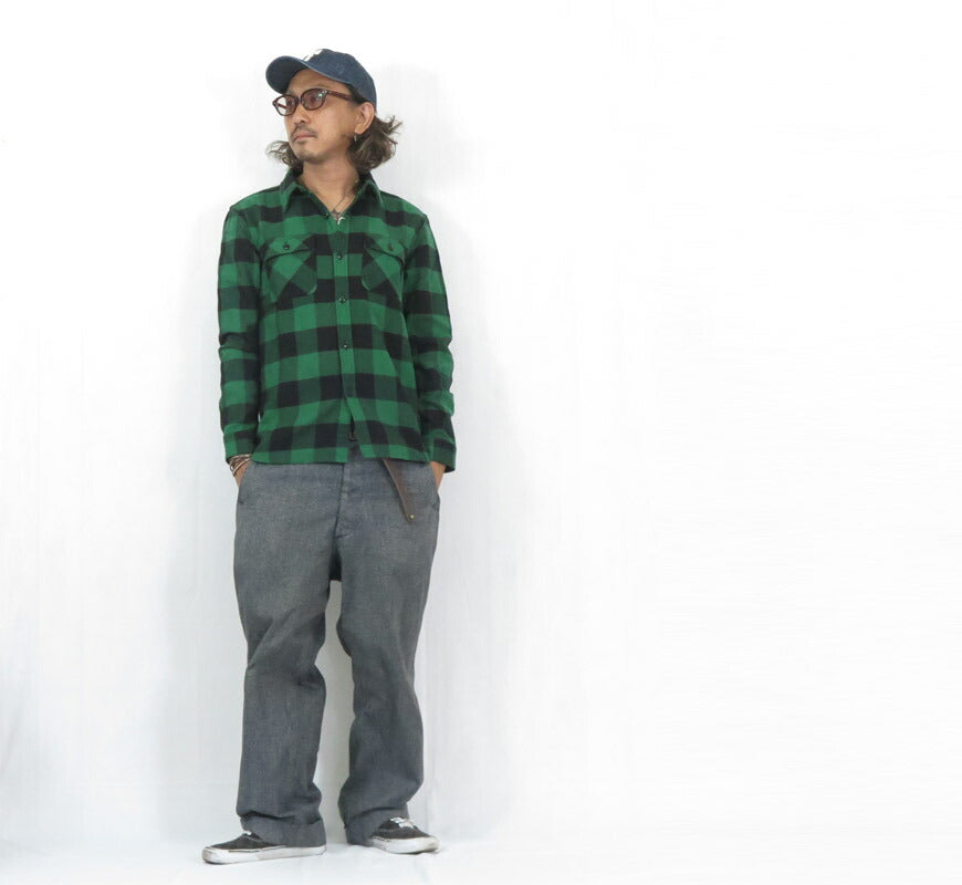 ■フラットヘッド THE FLAT HEAD 長袖 ブロック チェック フランネル シャツ FN-SNR-101L