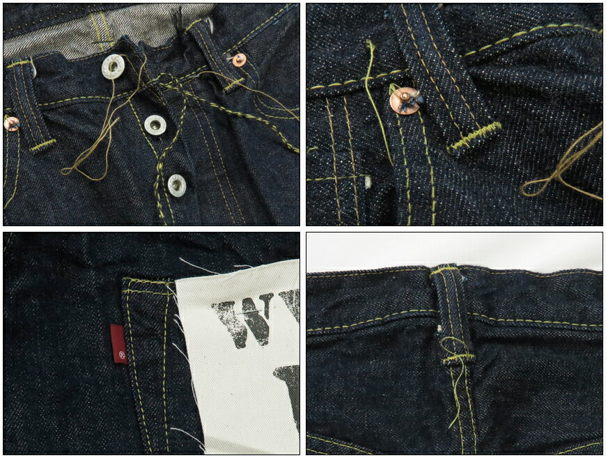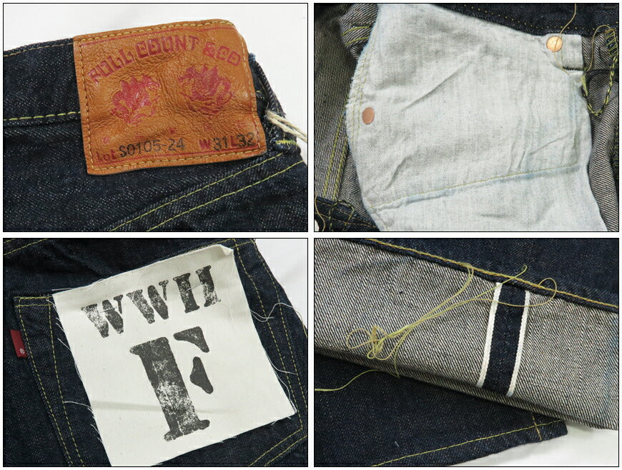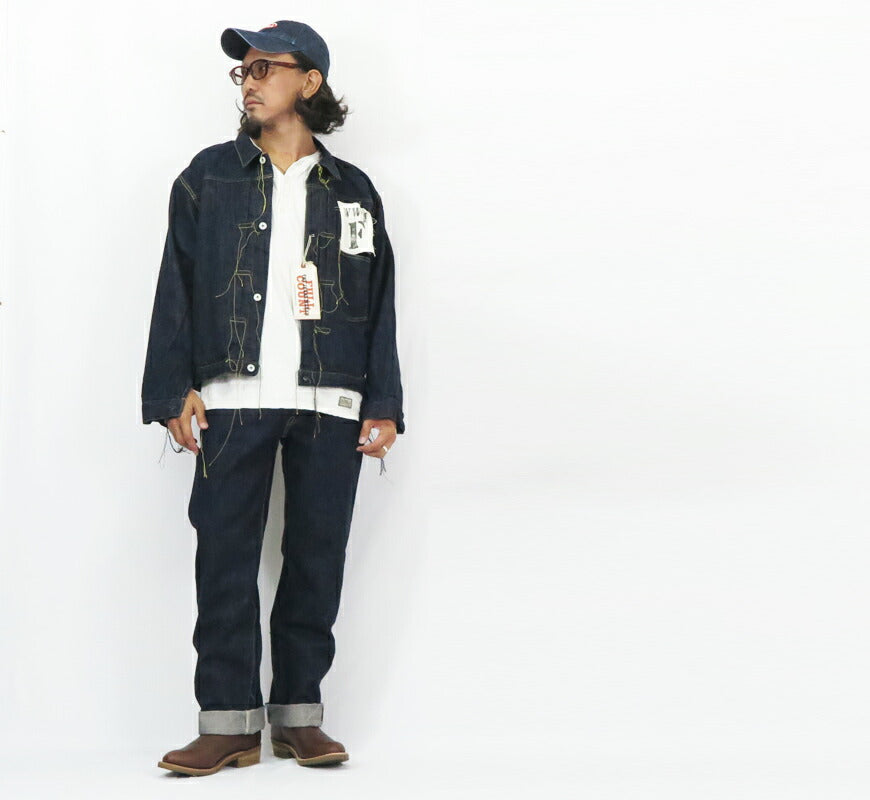 ![]() モデル 身長175センチ 体重62キログラム 31インチを着用 大戦モデルの魅力は、戦時中物資等の使用制限のため簡素化されたディティールが挙げられますが 別の角度を見ますと当時人員不足によって別の職場などから駆り出された経験不足を否めない 縫子による荒っぽい縫製も魅力の一つだと言えるでしょう。 今回フルカウントはその点に着眼し誇張表現することで迫力のある一本に仕上げました。 ディティールに関しては、0105をベースに若干股上を深くし、ひずみの大きなバックポケット、 ポケットスレーキには杢糸を使用したネル、フロントボタンにはワンスター唐草ボタン、 刻印なしのリベット、持ち出しの下部は折り込まず切りっぱなし、糸つみをせずに 半製品のような状態で仕上げております。そのままの状態で着用していただくことに 何ら問題はありませんが、オーナー様自ら最終の仕上げを楽しんでいただくというご提案でもあります。 ![]() 単なるレプリカジーンズという枠にとどまらず徹底的にシルエットにこだわっているブランド。 パンツ・トップスどれをとってもバツグンにきれいなラインは 多くのファンをひきつけています。