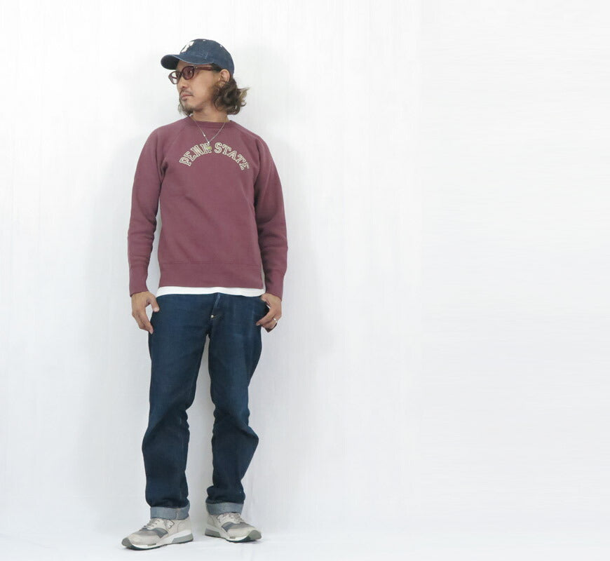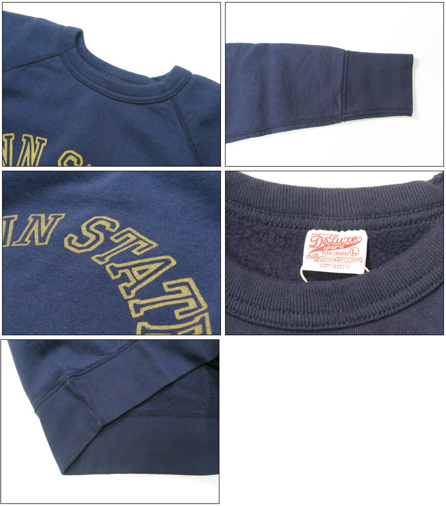 デラックスウェア DELUXEWARE ラグランスリーブ クルーネック スウェット 14ozミディアムニット ユニオンスペシャル "PENN STATE" S204-07【2025年秋冬新作】