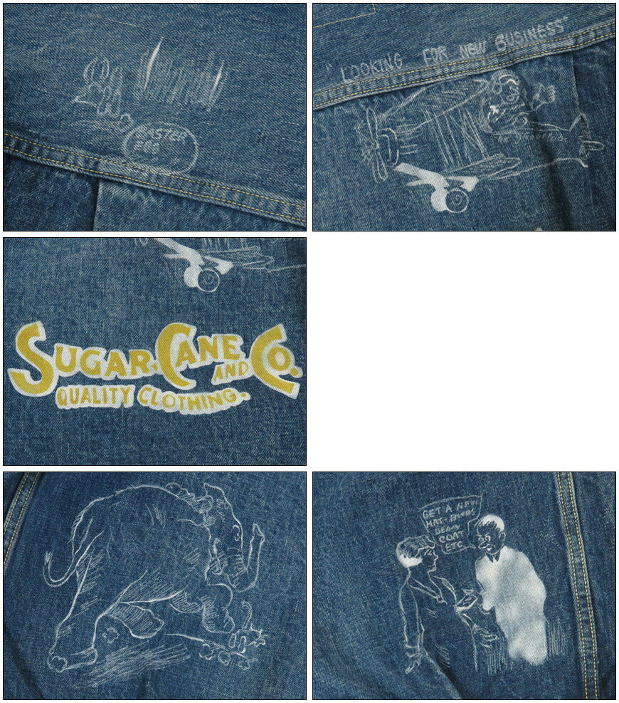 ■SSUGAR CANE シュガーケーン 14.25oz デニム ジャケット DENIM JACKET 1953 CARTOON PAINT ジージャン Gジャン SC15716