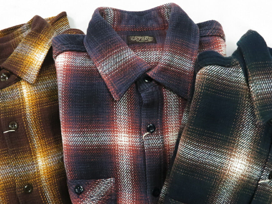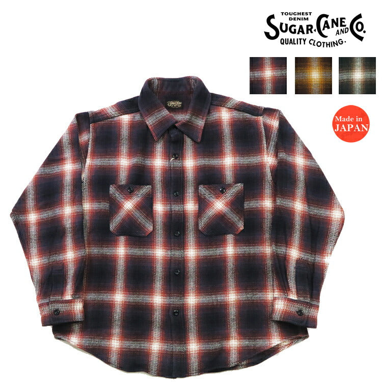 シュガーケーン SUGARCANE 長袖 ヘビーフランネル オンブレープレイドチェック ワークシャツ SC29203【2024-25年秋冬新作】