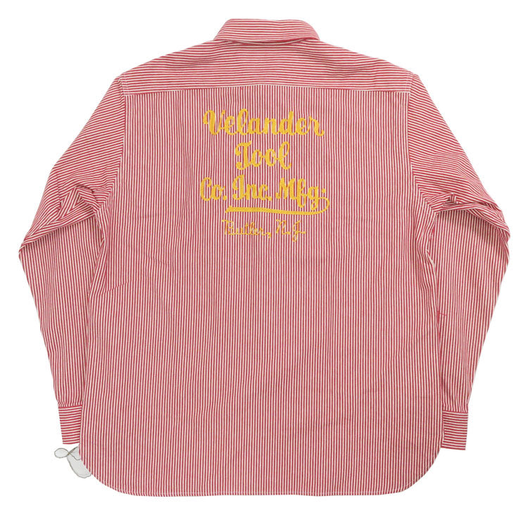 ![]() <モデル:身長175cm 体重62kg サイズLを着用> 太番手の糸で織り上げたやや厚手でタフなヒッコリーストライプ生地を使った長袖ワークシャツです。 胸には名前、背中には企業名(工具メーカー)がチェーン刺繍でレタリングされております。 レーヨンの刺繍糸は上品な光沢があり、チェーンステッチならではのクラシカルな刺繍をより引き立てます。 ![]() 長年に渡り、徹底したこだわりのボタンダウンウエアーを作り続けているSUGAR CANE(シュガーケーン)は、バズリクソンズ・サンサーフなどフライトジャケットやコレクタブルハワイアンシャツブランドを擁する、東洋エンタープライズ社のヴィンテージアメリカンカジュアルウエアーの老舗的ブランドです。 ![]() ![]() 105:オフホワイト ![]() 119:ブラック ![]() 165:レッド ![]() ![]() <モデル:身長175cm 体重62kg サイズLを着用> ![]() ![]() サイズ詳細