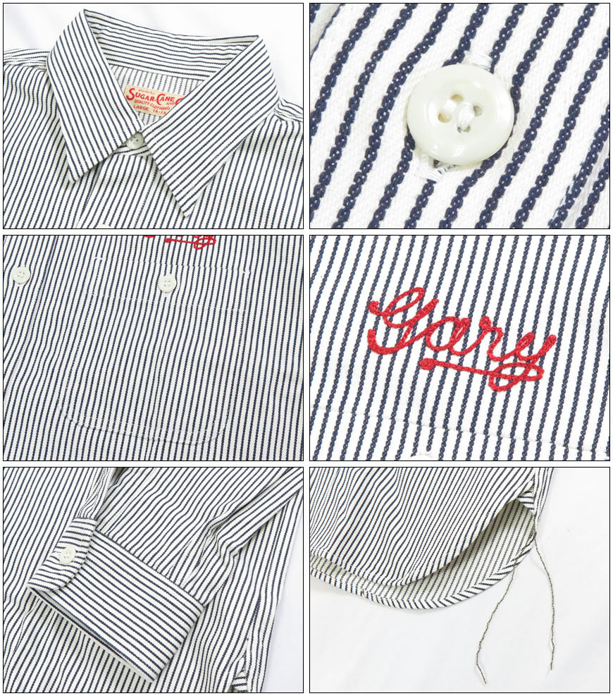 ■シュガーケーン SUGARCANE 長袖 ヒッコリー ストライプ ワークシャツ SC29376