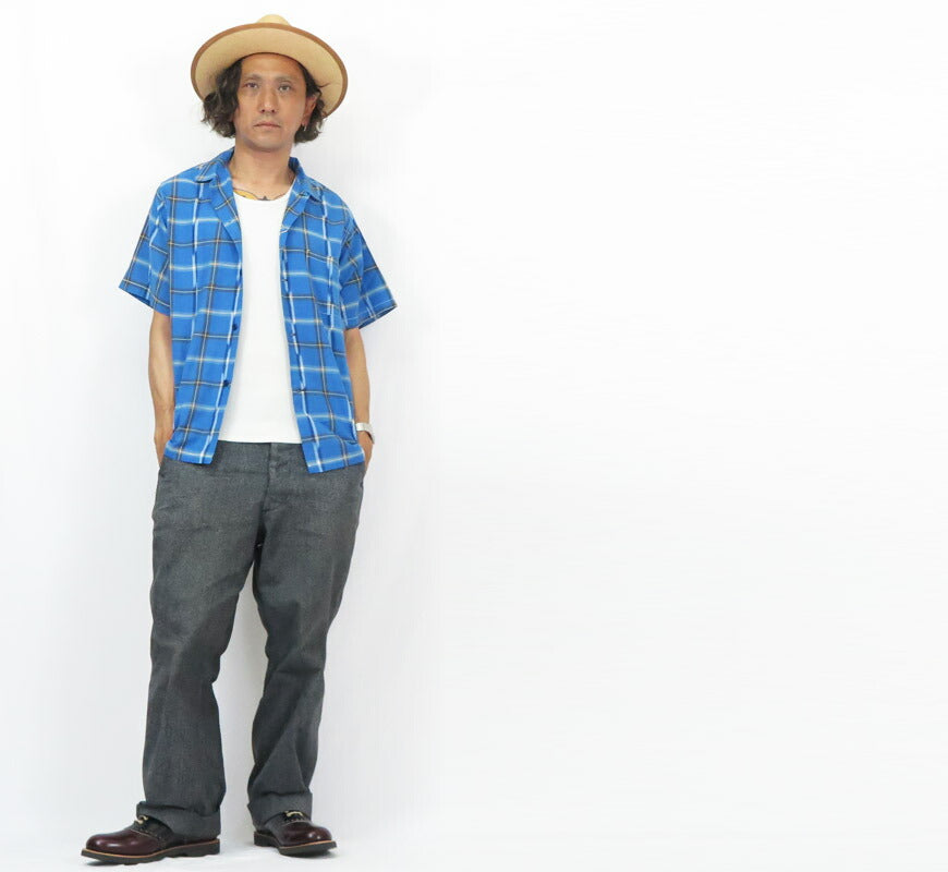 ![]() モデル 身長175センチ 体重62キログラム Lを着用 1950~1960年代のアイビースタイルには欠かせないインド南東部のマドラス(現チェンナイ)で織られた チェック生地を使用したオープンシャツ。国産では出せない風合いや色合いが特徴で、経糸の一部に絣糸を使用している。 襟元にTRUE MADRASラベルが縫い付けられ、フロントには尿素ボタンを採用。 重量:150g ![]() 125ブルー ![]() 165レッド