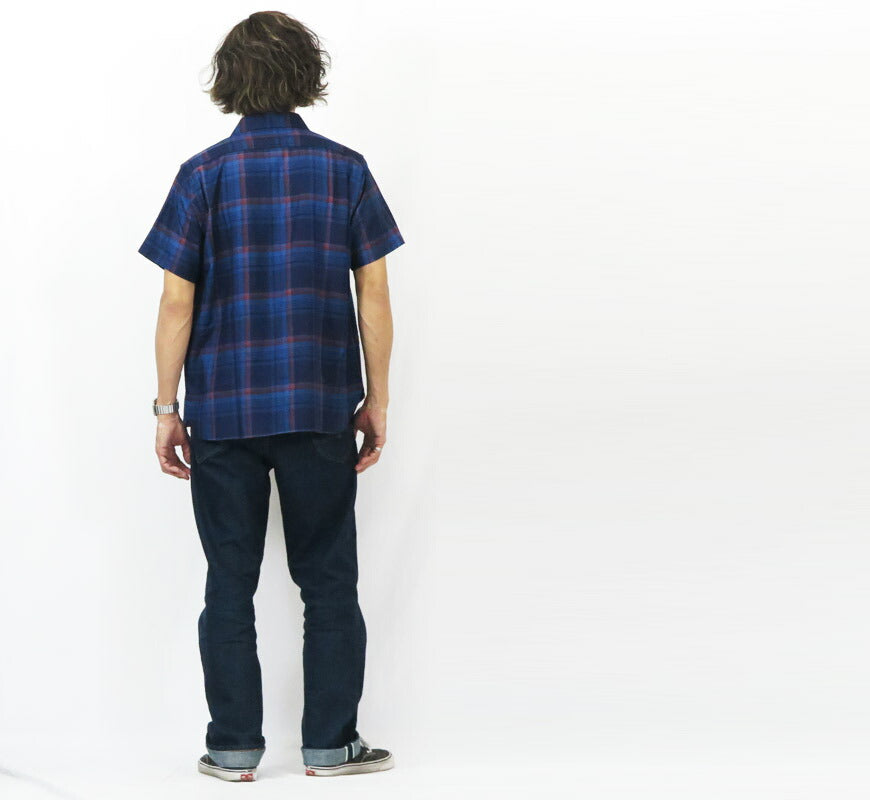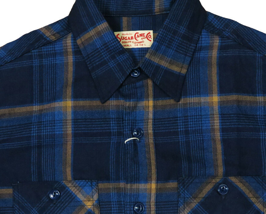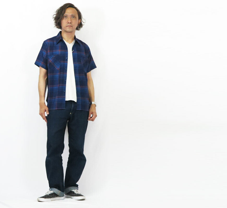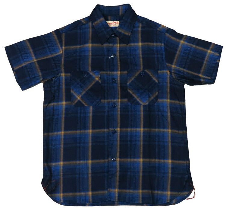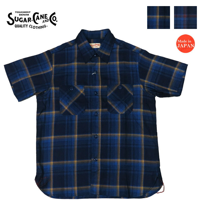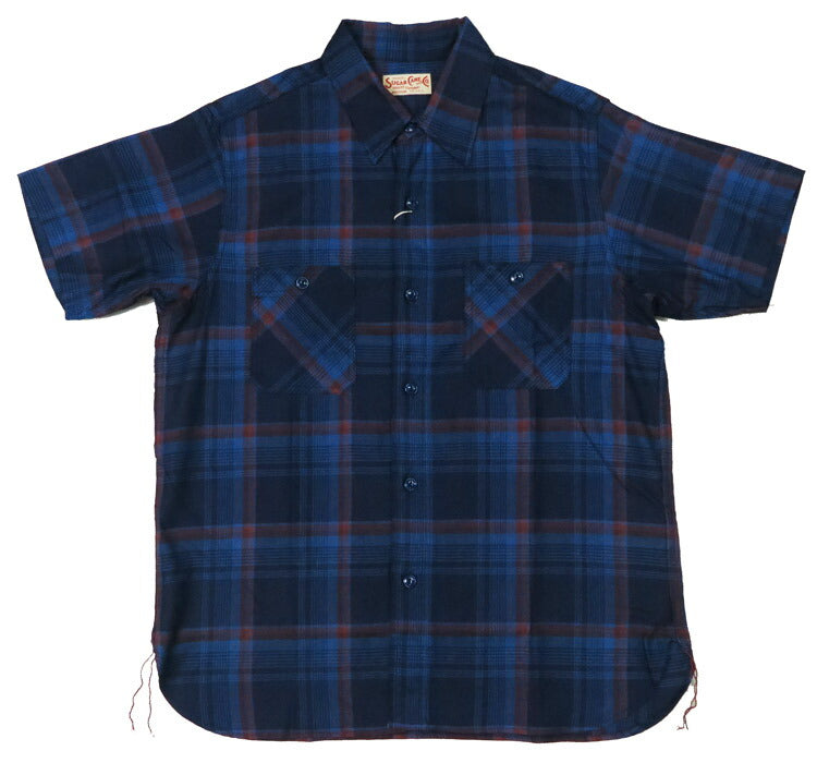 ■シュガーケーン SUGARCANE インディゴチェック半袖ワークシャツ SC39518