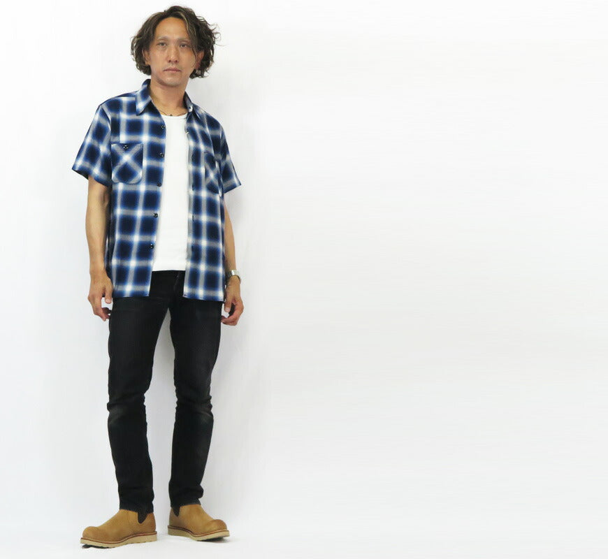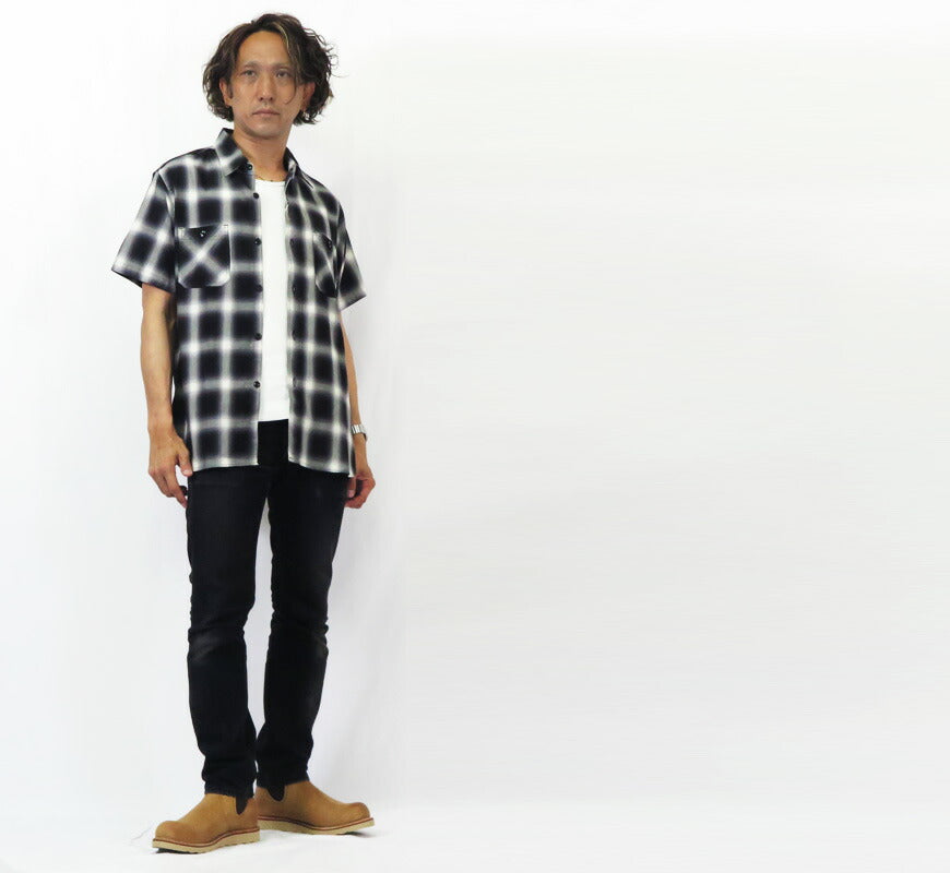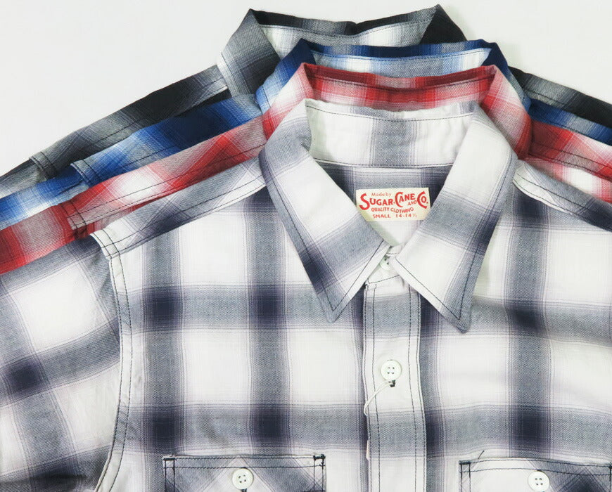 ■シュガーケーン SUGAR CANE 半袖 オンブレーチェック ワークシャツ SC39519