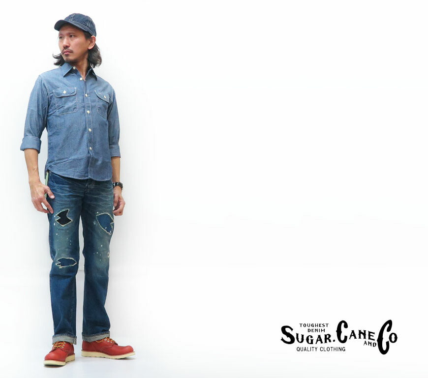 ![]() <モデル:身長175センチ 体重58キログラム 29インチを着用> シュガーケーンを象徴する、砂糖黍繊維を使ったオリジナルデニム! シュガーケーンが今まで培ってきたノウハウをすべて集約し、 現段階で考えられる、最高の「VINTAGE」感を表現した渾身のシリーズ! 素材は従来の砂糖黍デニムをさらに解消した14オンスの生地で、 今までよりもネップ(毛足)を抑え、よりヴィンテージに近いムラ感が出るように工夫しています。 シルエットは、スタンダードなレギュラーストレートで、どんなスタイリングにもマッチします。 カラーは、「10 Year Aged」。 その名の通り、10年間履き続けたようなユーズド感を表現しています。 退色して土埃に汚れたようなカラーリング、擦り切れた箇所を宛て布してリメイクした風合いなど、 リアルな仕上がりが圧巻です。 ※リメイク加工・ユーズド加工の具合は1点毎に異なります。 ![]() 長年に渡り、徹底したこだわりのワークウエアーを作り続けているSUGAR CANE(シュガーケーン)は、バズリクソンズ・サンサーフなどフライトジャケットやコレクタブルハワイアンシャツブランドを擁する、東洋エンタープライズ社のヴィンテージアメリカンカジュアルウエアーの老舗的ブランドです。