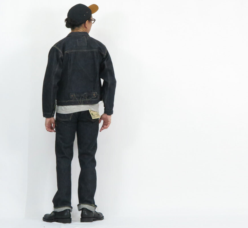 ![]() <モデル:身長175cm 体重60キログラム 29を着用> 第二次大戦の最中である1944年に作られたモデルを、デニムワークウェアの本場アメリカで再現。 1942年、アメリカ政府の規制により衣料品用の金属パーツや作業着のディテールの制限が始まった。 これは金属や生地、糸などの使用量削減が目的で1946年まで続き、規制対象のアイテムには Simplified(簡略化)を表す頭文字のSが、ロットナンバーの前に付けられている。 このウエストオーバーオールでは、それまで付いていたバックストラップが省略された。 リベットやバータックの数も制限の対象だったため、コインポケットや小股部分のリベットが無くなり、 ヒップポケットの隠しバータックもステッチに変更されている。 ポケット袋地にはアメリカ政府より配給されたライトオンスのデニムを使用し、 縫製は粗いミシンピッチや経験者不足による歪なステッチワークも再現。 当時さまざまな大戦モデルが存在していたが、シュガーケーンが資料として収集してきた 数多のヴィンテージの中から特徴的なディテールをピックして組み立て、シルエットは最も太めのパターンを採用した。 使用している生地はシュガーケーンオリジナルの13oz.デニム。現在では加工して節を作る「ネップヤーン」が主流だが 当時の技術に合わせるため、紡績の段階で調整を行い、通常削ぎ落とされる短い綿や屑を残す事に成功。 こちらの紡績による7番手のムラ糸を使用しシャトル織機で織り上げた。セルビッジは両端で赤とピンクの2色を使い分けている。 経糸のピュアインディゴを染色する際、濃度を上げると通常は赤味を帯びてしまうが、 赤味を抑えつつ特濃に仕上げることでヴィンテージの色味を再現した。 同じデニム生地を使用したジャケットとセットアップで着用可能。 ![]() 長年に渡り、徹底したこだわりのボタンダウンウエアーを作り続けているSUGAR CANE(シュガーケーン)は、バズリクソンズ・サンサーフなどフライトジャケットやコレクタブルハワイアンシャツブランドを擁する、東洋エンタープライズ社のヴィンテージアメリカンカジュアルウエアーの老舗的ブランドです。