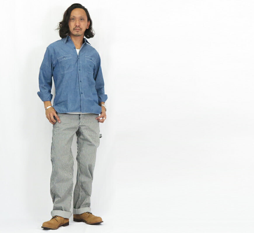 ![]() モデル:身長175cm 体重62kg 30インチを着用 ヴィンテージ同様、旧式のシャトル織機で織り上げたハリのある11オンスのヒッコリーストライプ生地のワークパンツ。 ストライプ柄のネイビーの部分はロープ染色したインディゴであり、経年変化でデニムのように褪色。 長年着用を繰り返すことでエイジングにも期待できる。 重量:770g ![]() 長年に渡り、徹底したこだわりのボタンダウンウエアーを作り続けているSUGAR CANE(シュガーケーン)は、バズリクソンズ・サンサーフなどフライトジャケットやコレクタブルハワイアンシャツブランドを擁する、東洋エンタープライズ社のヴィンテージアメリカンカジュアルウエアーの老舗的ブランドです。